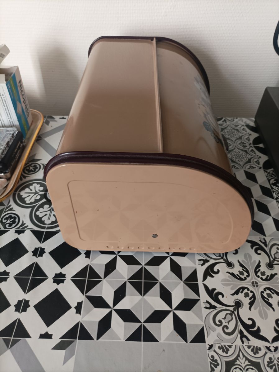 Ancienne boite à pain en tôle de marque Rossignol, excellent état (voir photos)