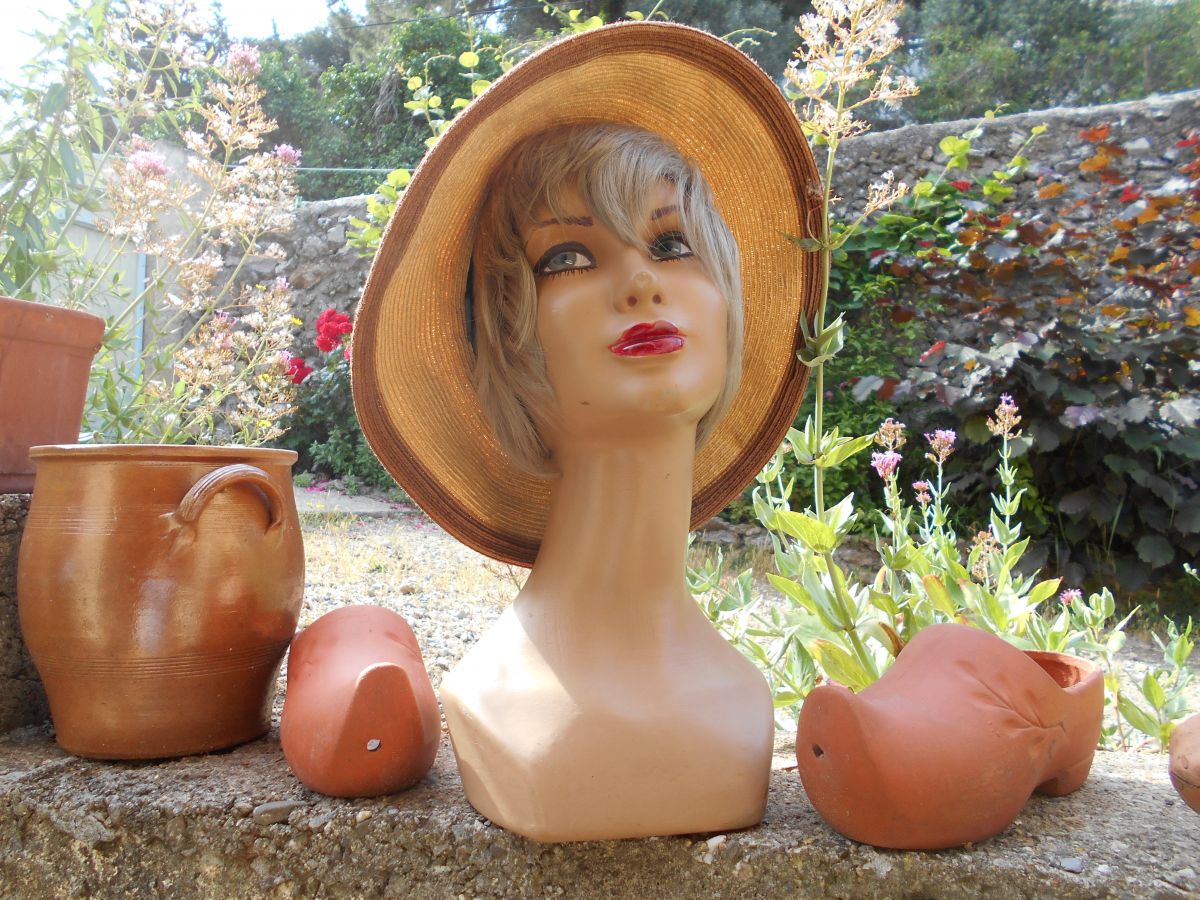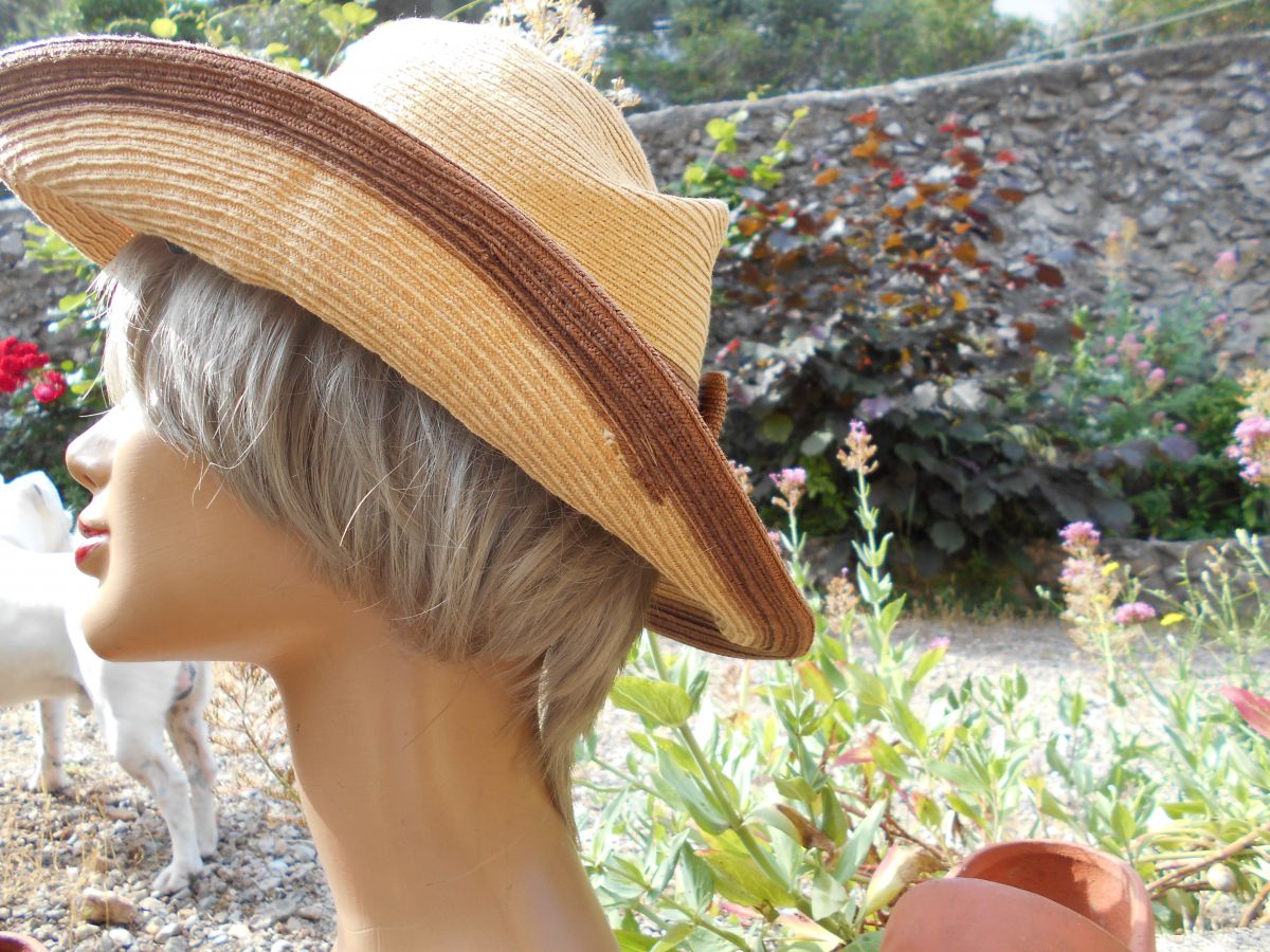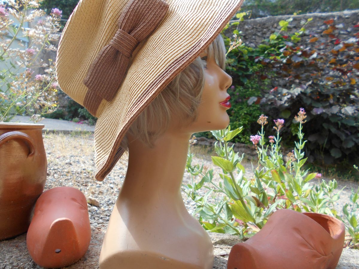 CHAPEAU DE PAILLE VINTAGE RETRO T 57 NATUREL MARRON
