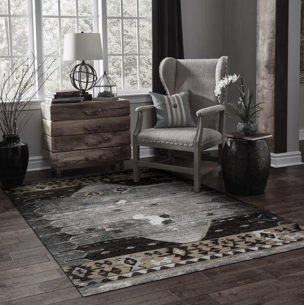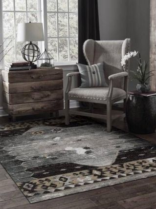 Un tapis doux et moderne simple de couleurs gris foncé et de motifs. Tapis épais et résistant.