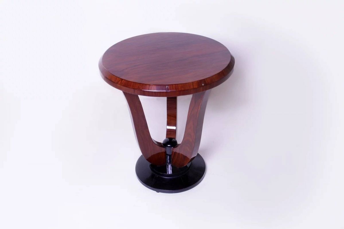 Voici une structure en bois de hêtre avec un Placage en palissandre en socle en laquer en noir.