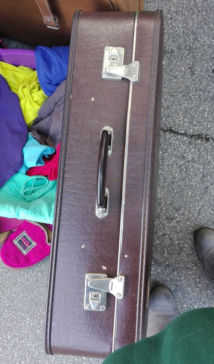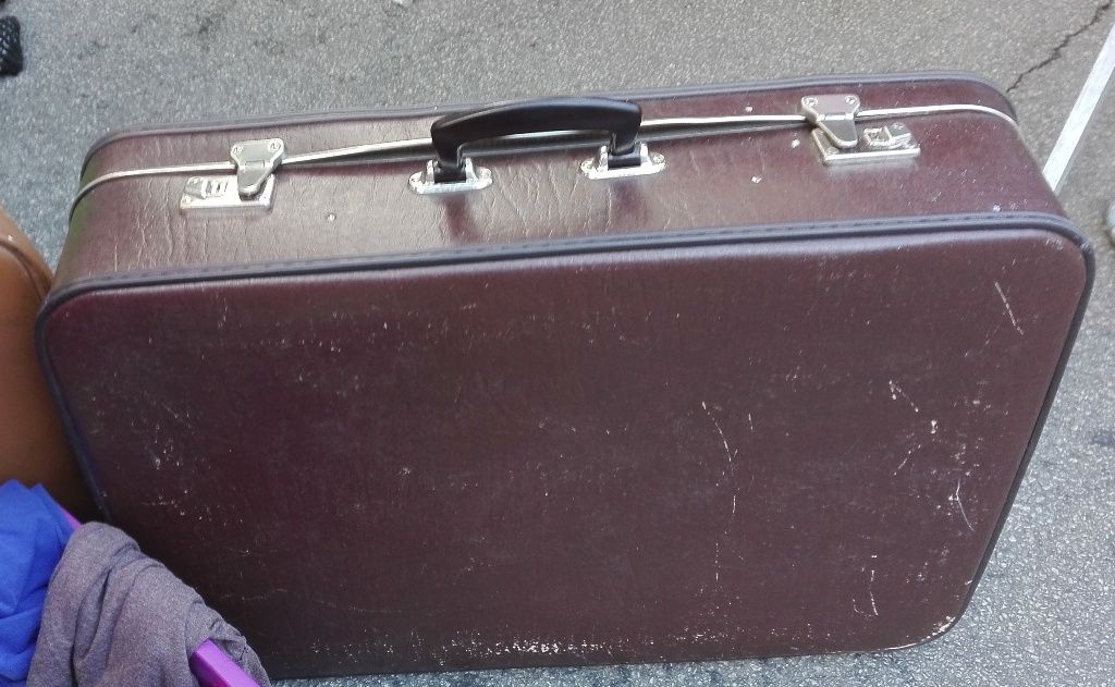 Très grande valise vintage en carton renforcé. Malle très solide, avec un mécanisme de fermeture qui fonctionne parfaitement. Légère mais très pratique.
