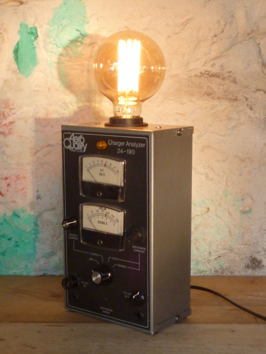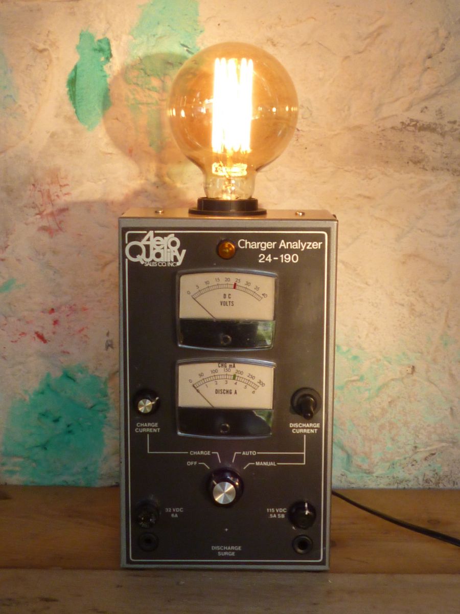 Lampe réalisée a partir d'un ancien " Charger Analyzer - Aero Quality " .