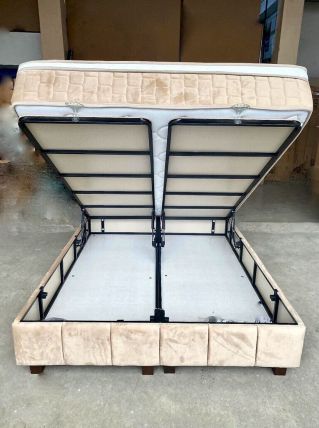 Ce Lit Contemporain est doté d’un tissu super doux de couleur beige , Ce lit dispose d’un matelas très confortable de 30 cm, mais aussi d’un coffre de rangement facile a manipuler au quotidien , parfait pour ranger ces accessoires, vêtement…