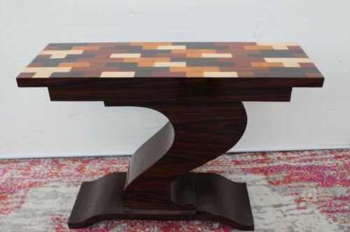 Plaquage en bois de palissandre et un mélange de couleur sur le dessue, il et verni sur toute la structure