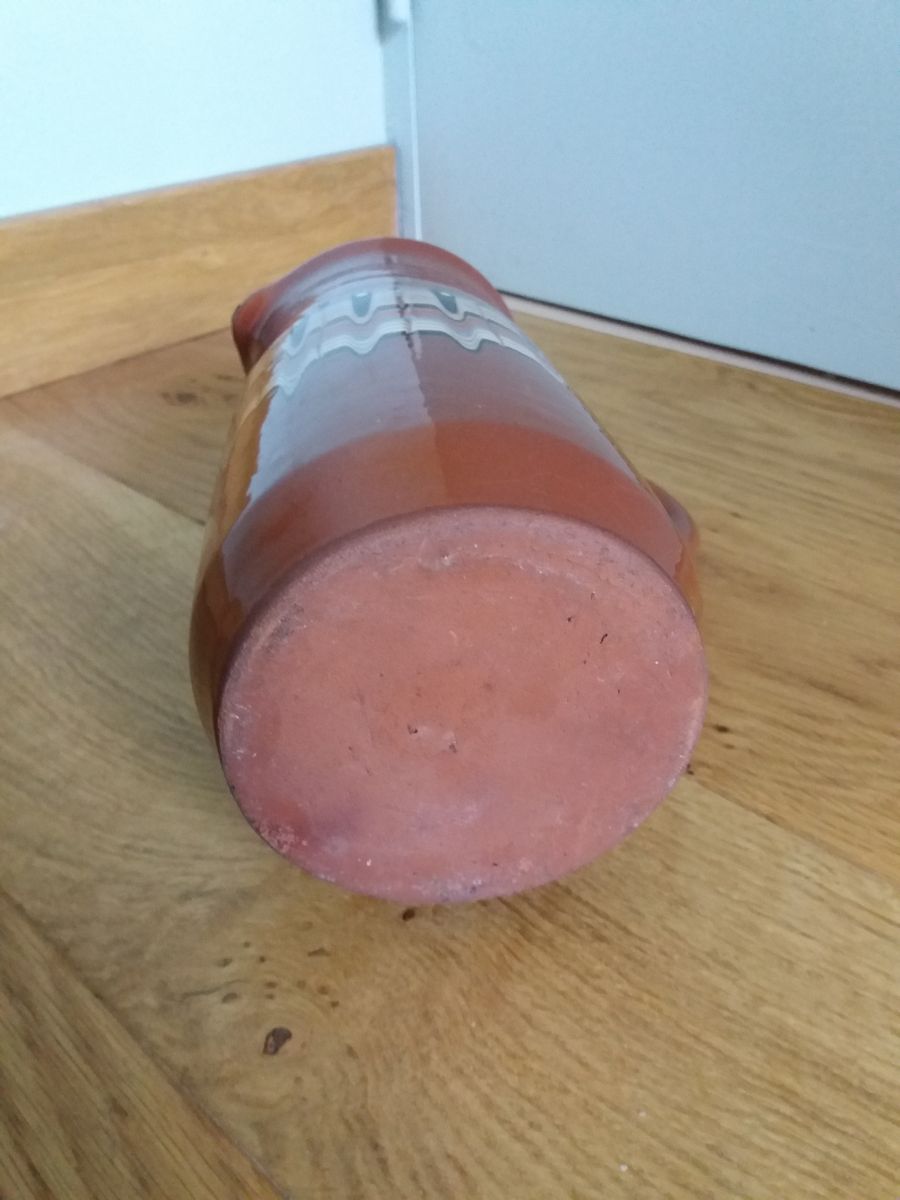 Ce pichet date probablement des années 50 à 70. Il pourra servir en décoration mais aussi pour un usage alimentaire car il est très propre à l’intérieur et sa grande ouverture permet de le nettoyer facilement.
