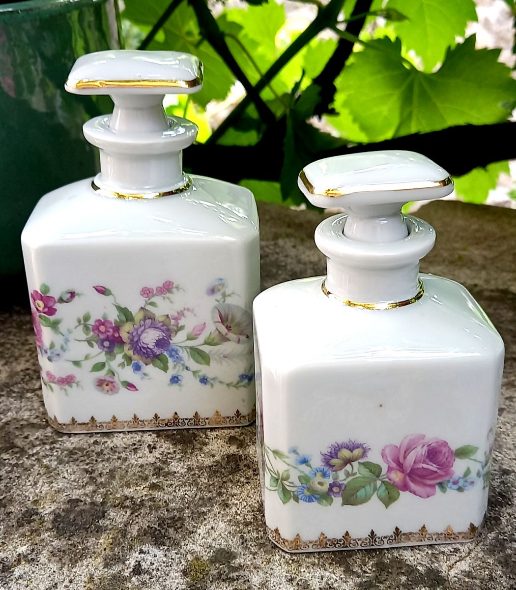 Ensemble de deux flacons en porcelaine de Limoges en parfait état.