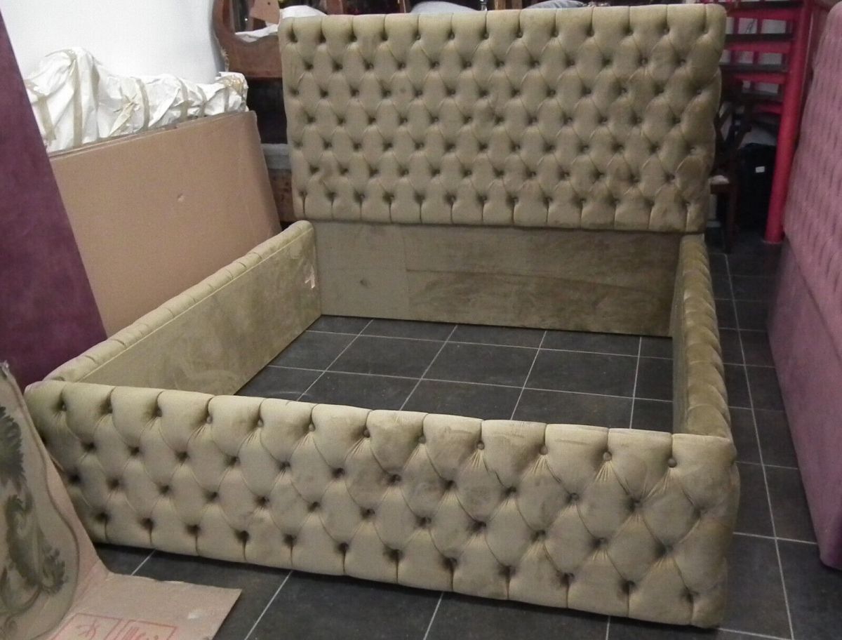 Ce Lit Contemporain est doté d’une large tête de lit capitonné d’un tissu super doux de couleur beige