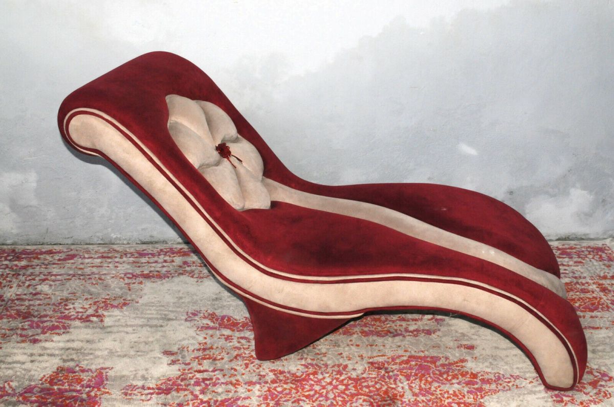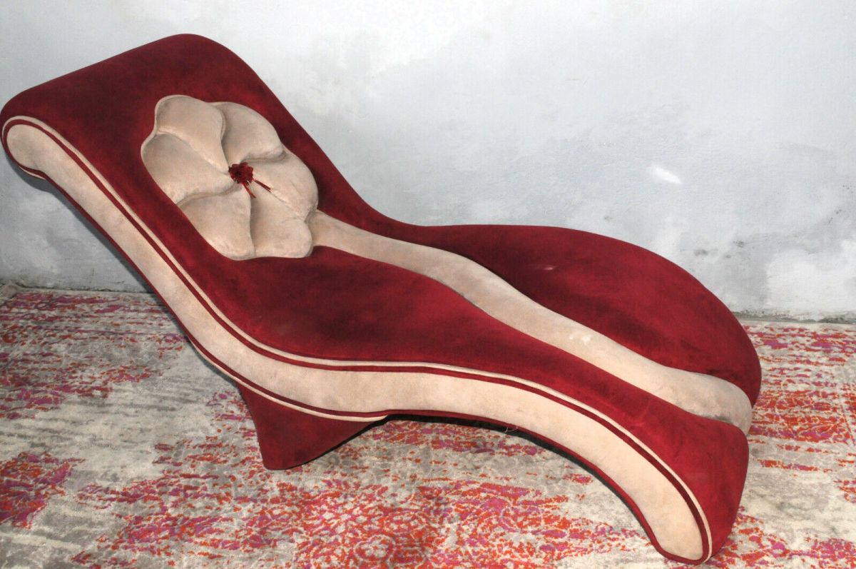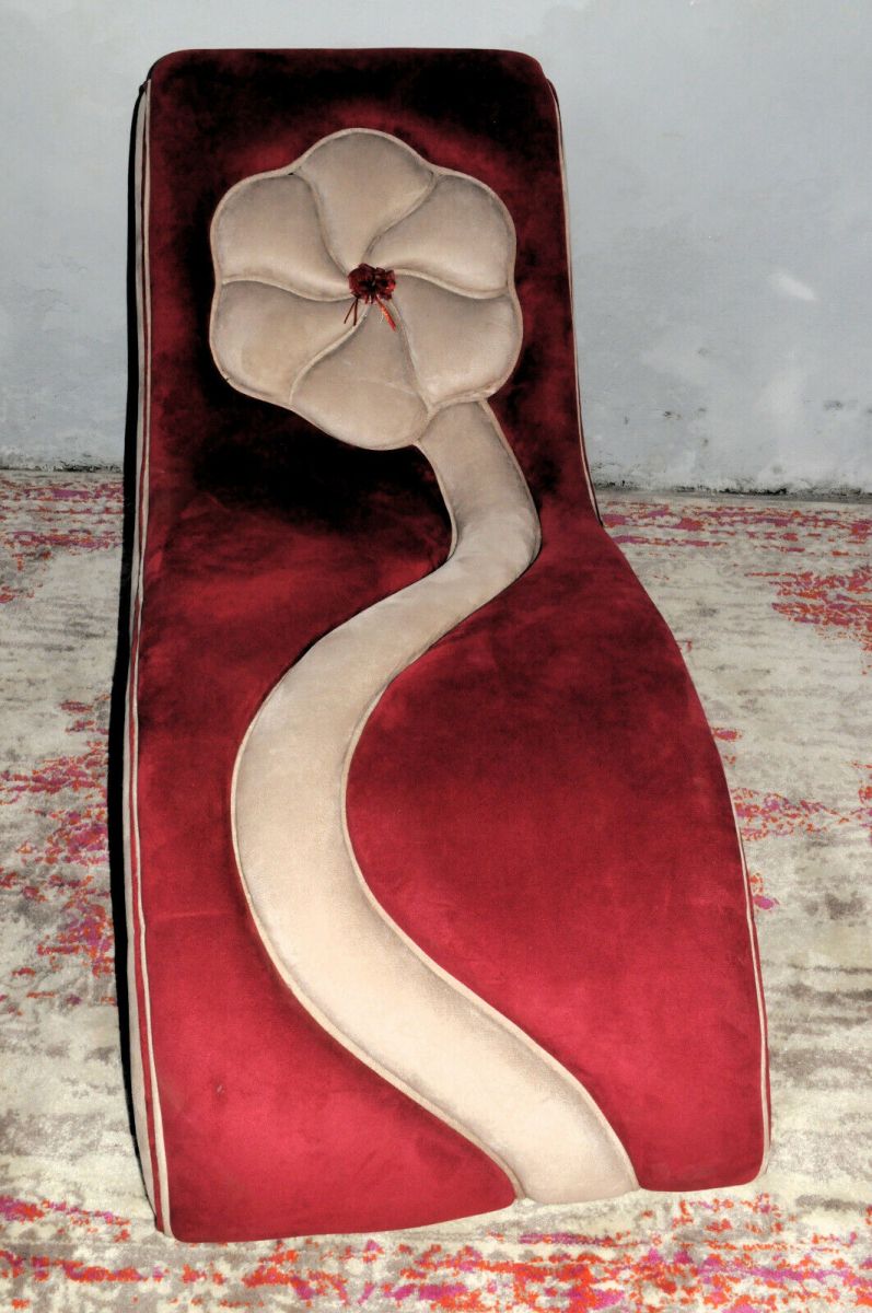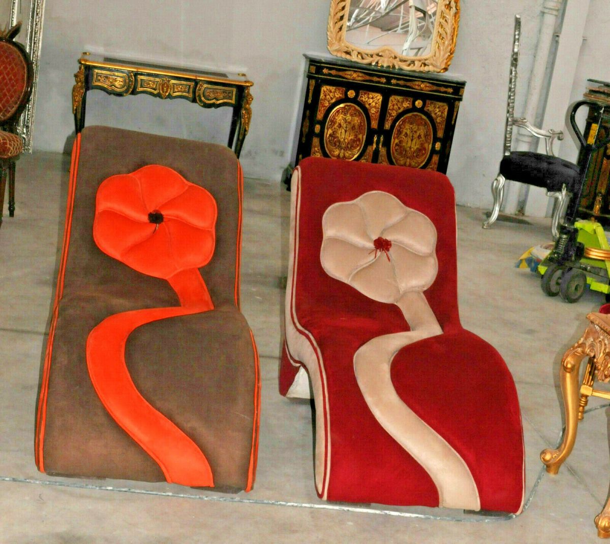 Deux banquettes de Style Louis XV l'un au tissu rose,beige avec une fleure beige et l'autre au tissu marron, orange avec une fleure orange. Confortable pour se détendre