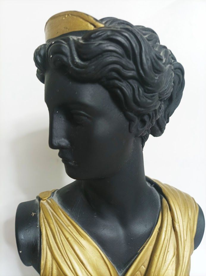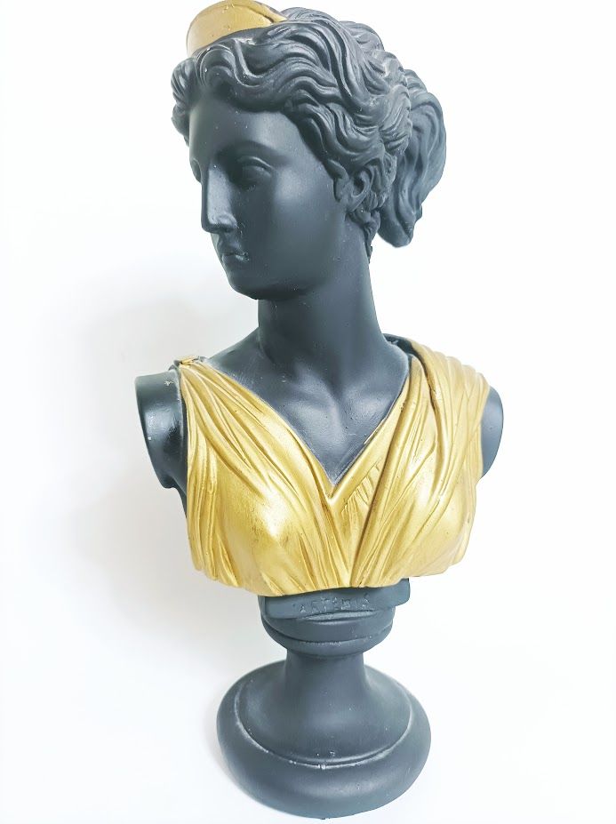 Statue du buste de la déesse Gréco Romaine Artémis Diana En marbre coulé résine.