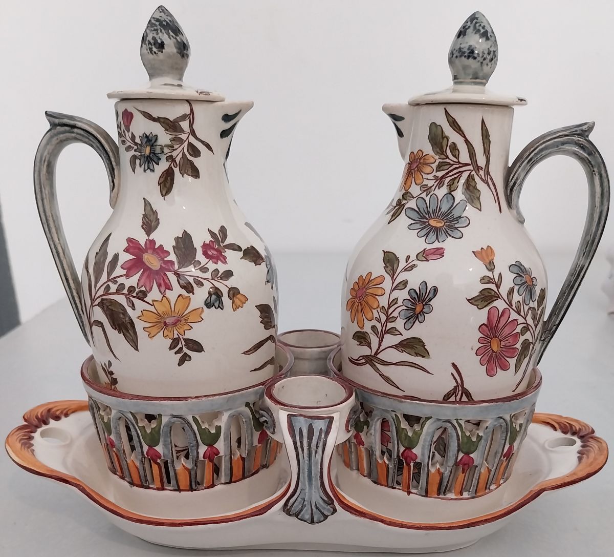 Huilier vinaigrier en faience de LUNÉVILLE.