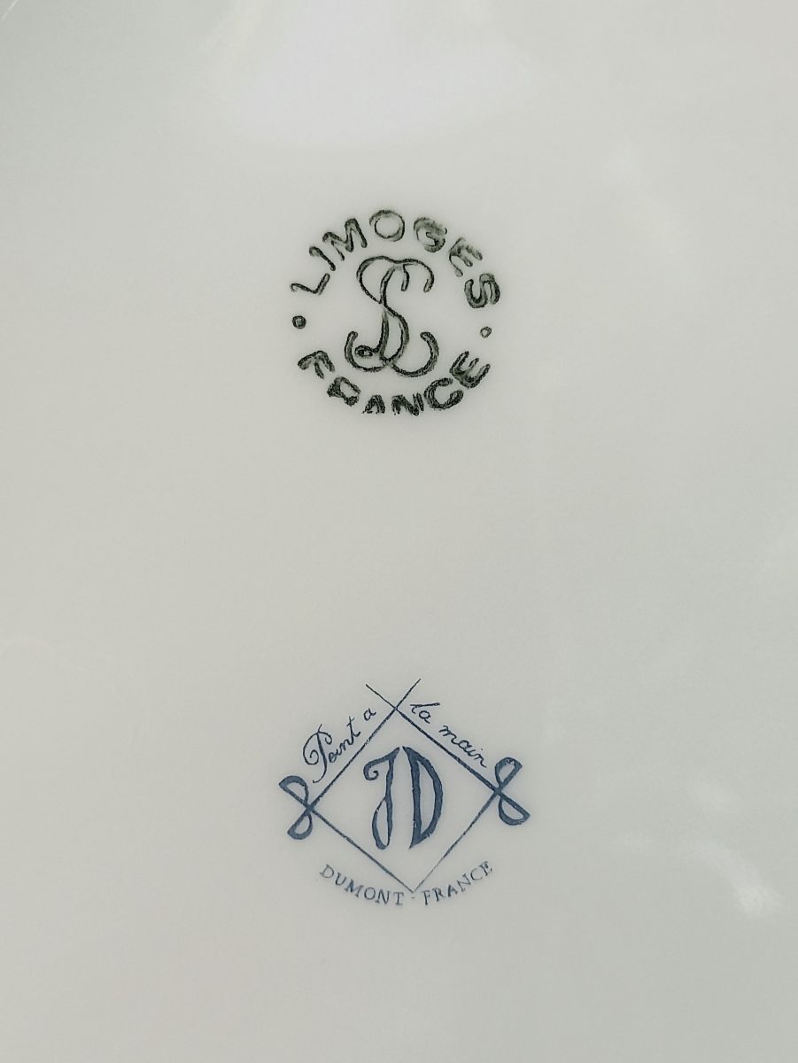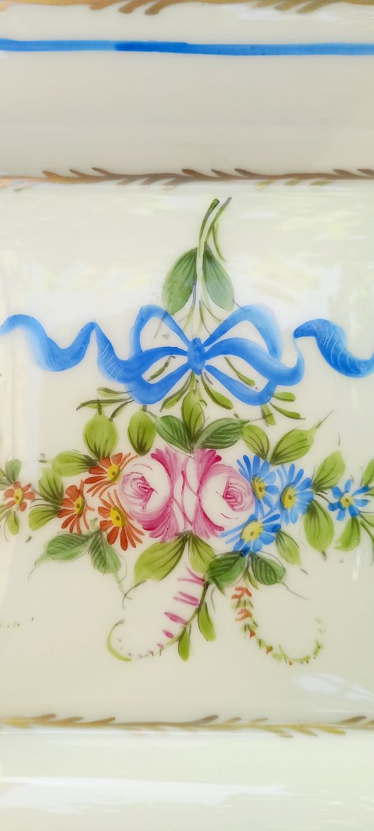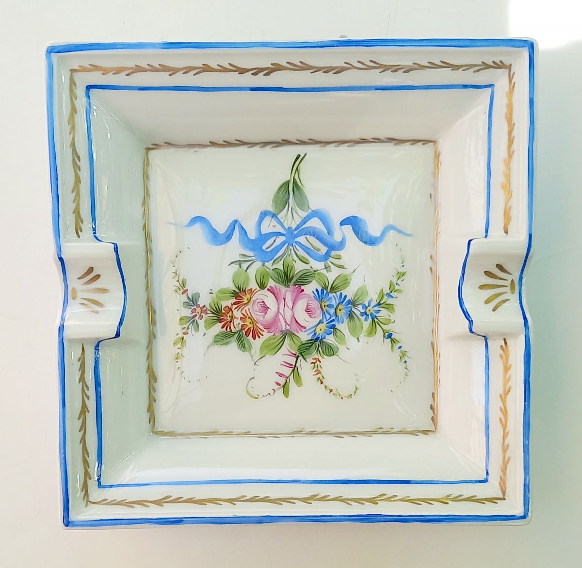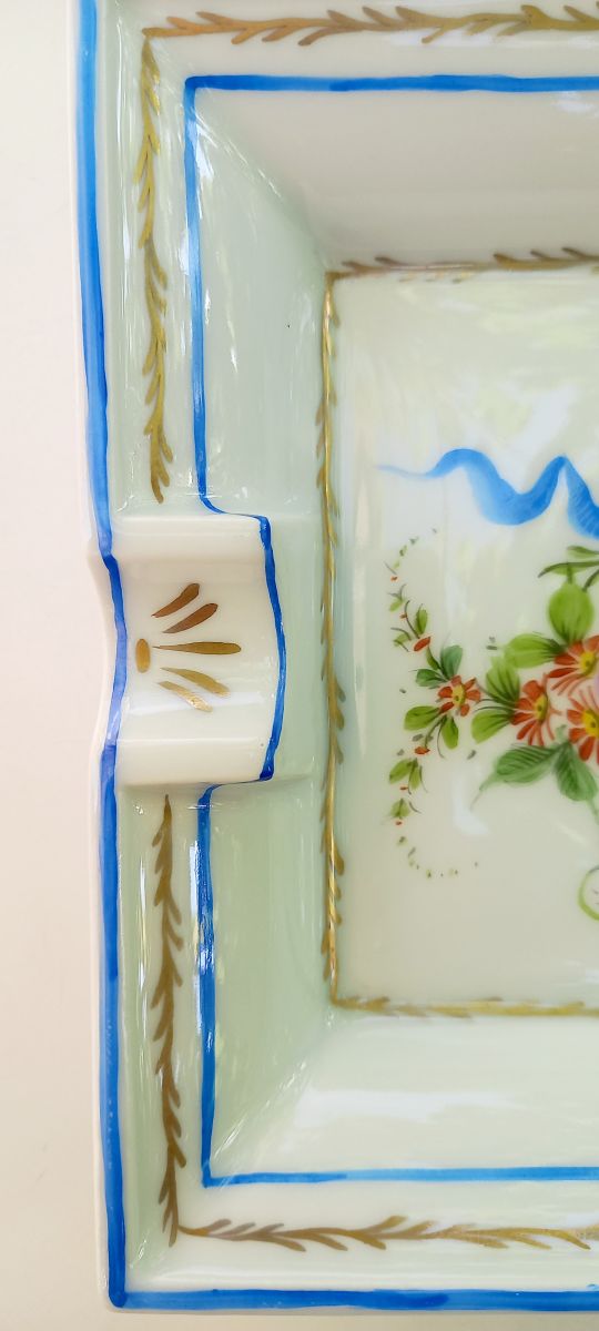 Grand vide poche ou cendrier en porcelaine de Limoges avec décor peint à la main.