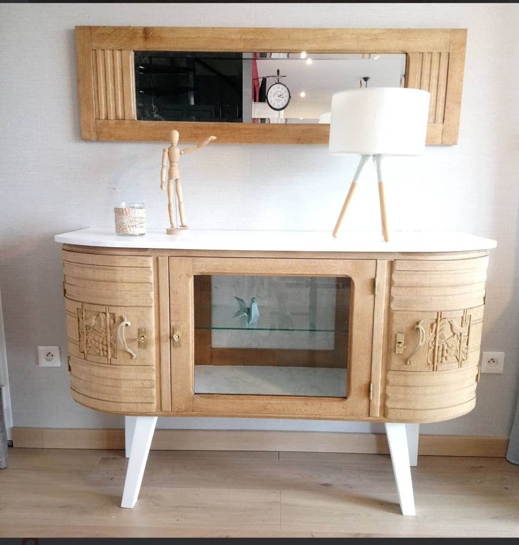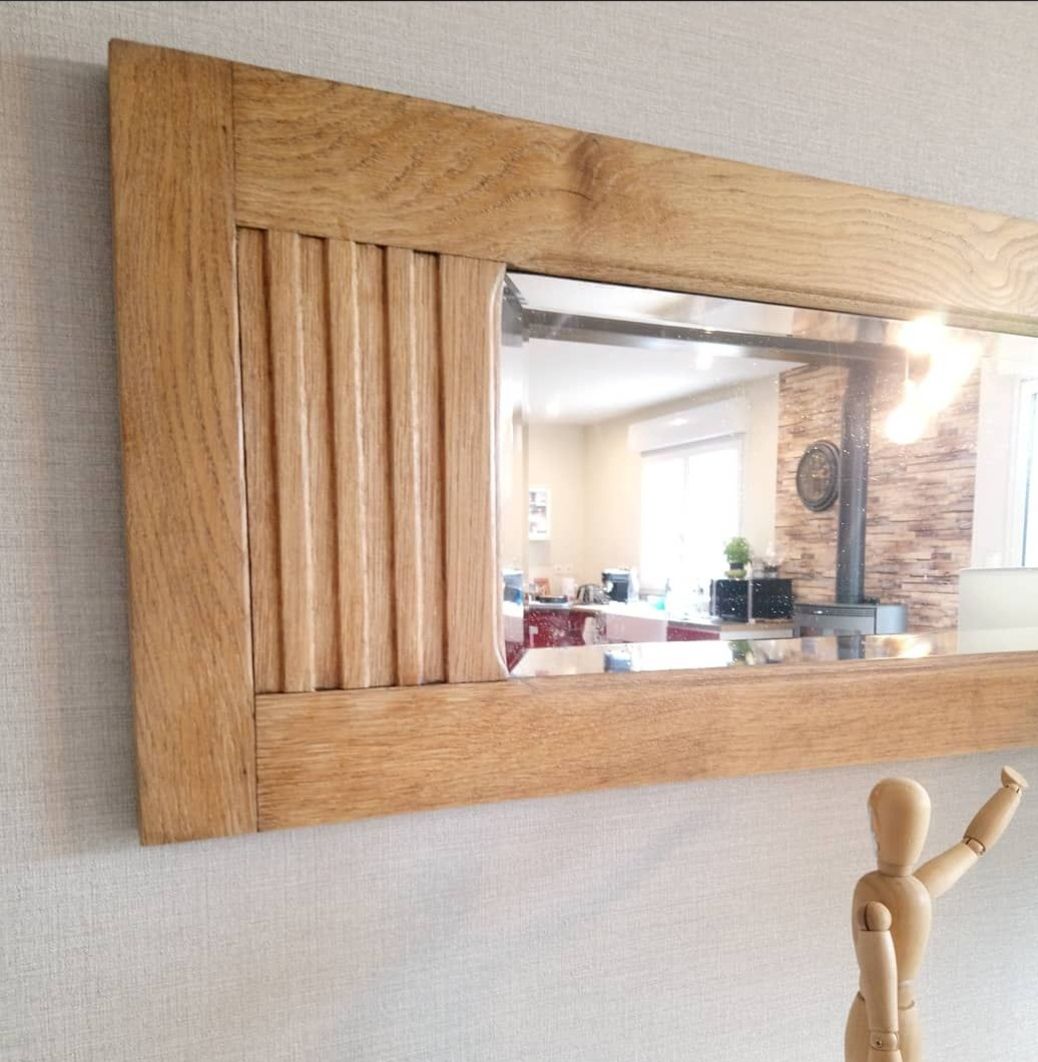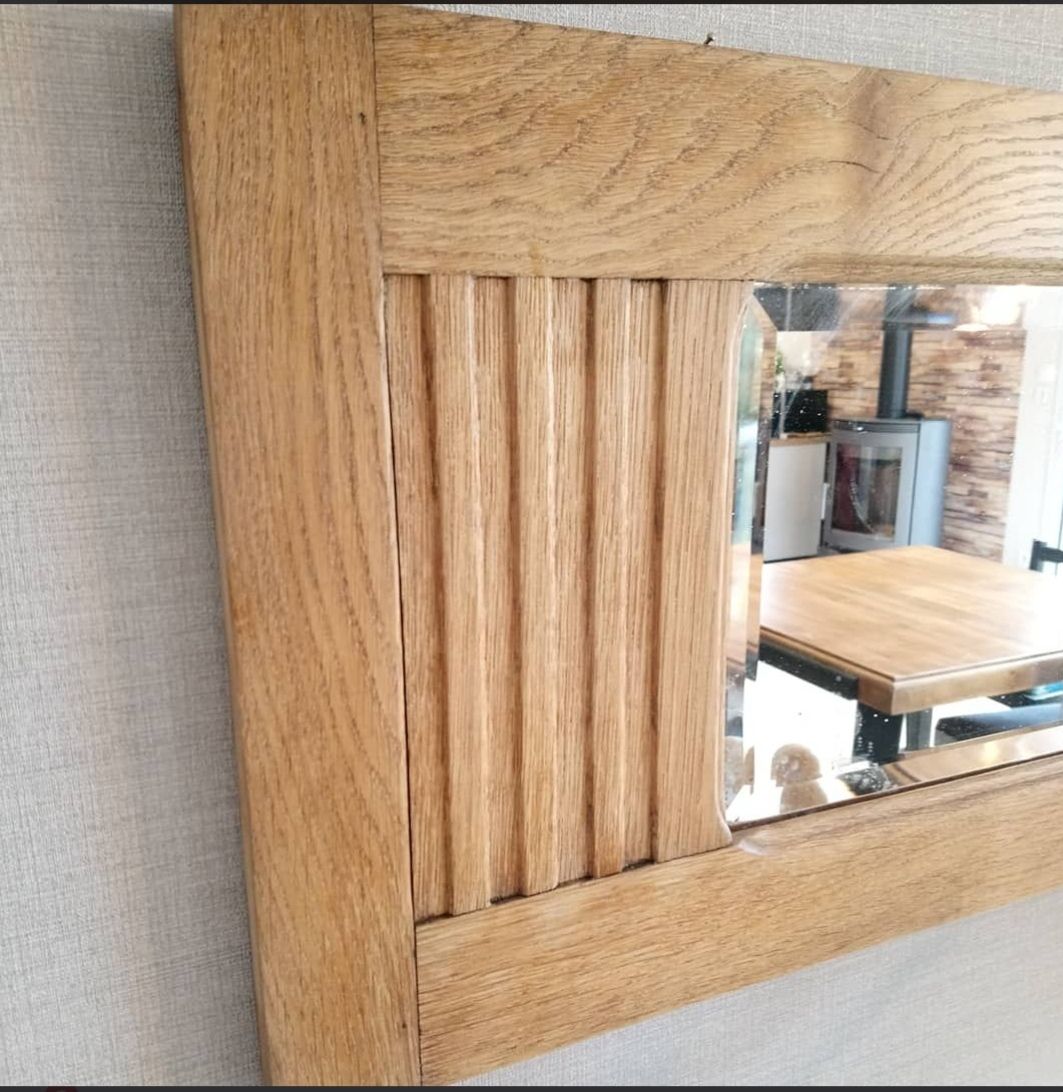 Ancien miroir biseauté, cadre en chêne massif ciré incolore. Sobre et chic. Comme tout meubles anciens quelques marques du temps peuvent persister.