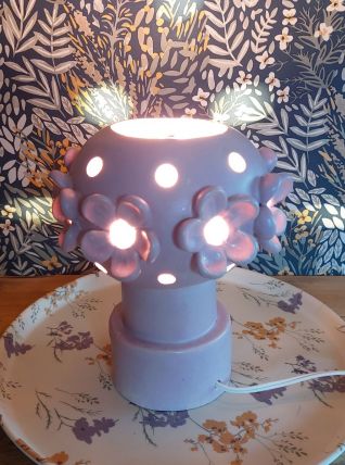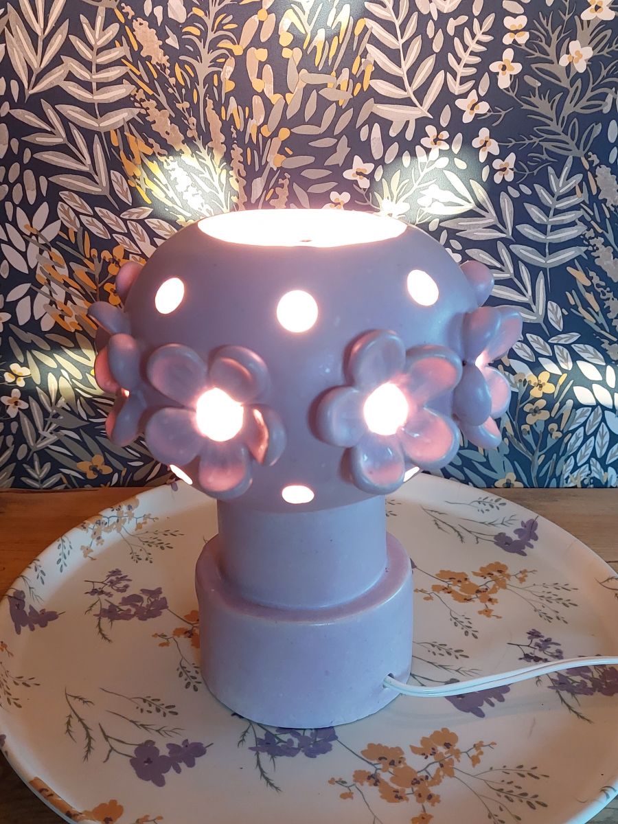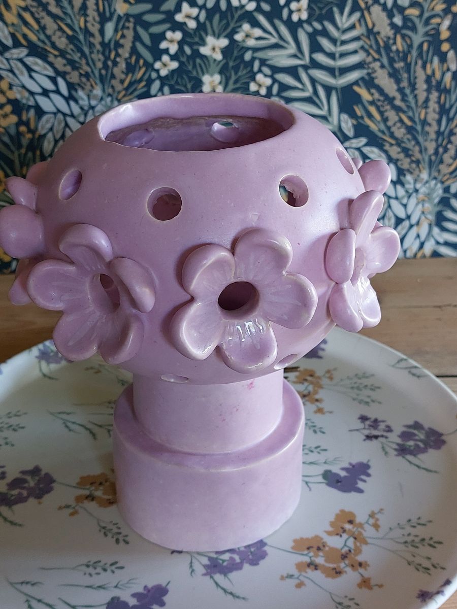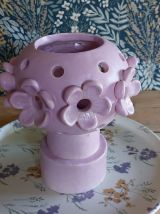 Lampe vintage années 70 en grès émaillé rose poudrée.