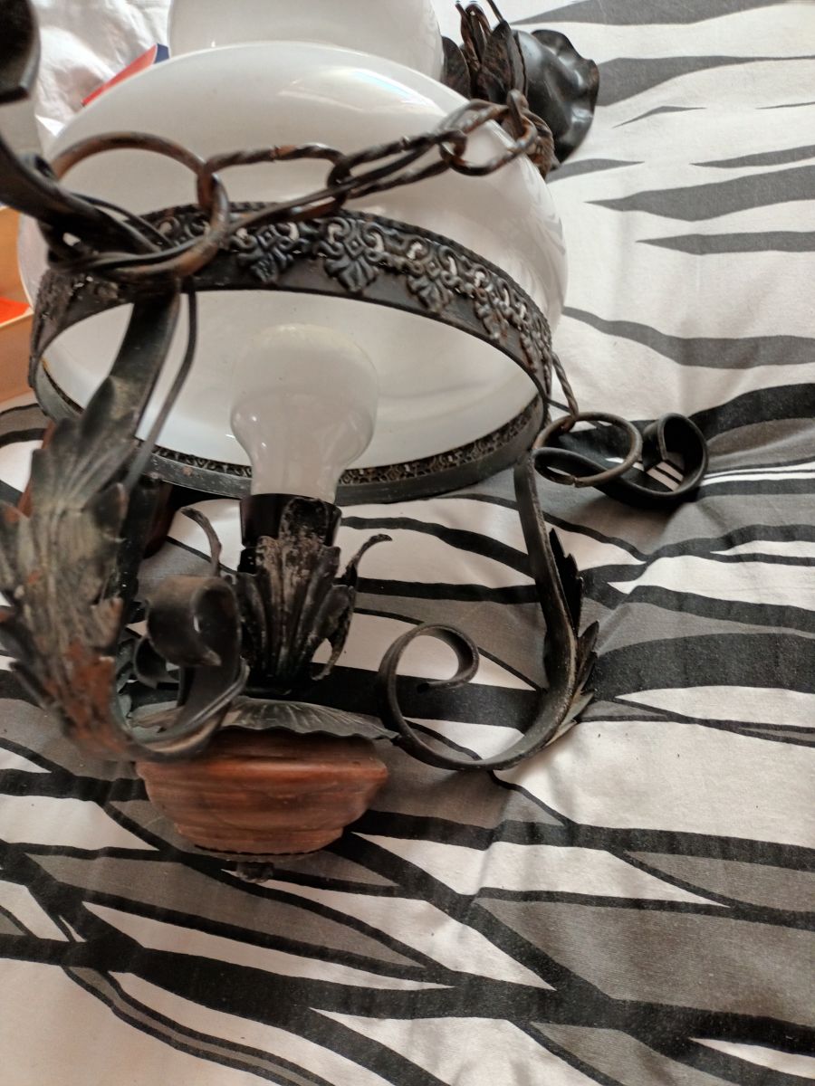 Suspension bois fer forge globe en opaline