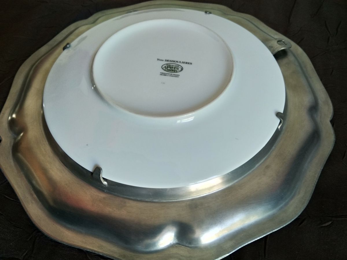 Assiette porcelaine de Limoges et étain