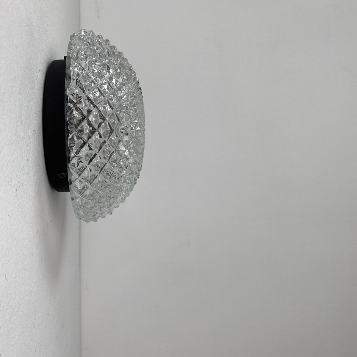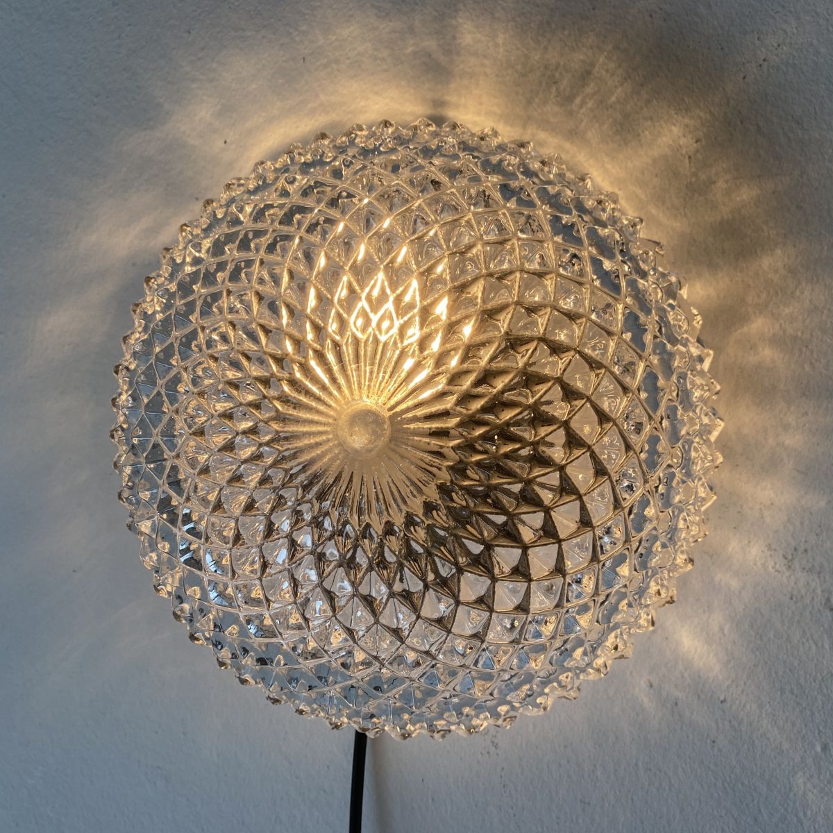 Ancienne petite applique ronde vintage des années 1960. Base en métal. Belle lumière.