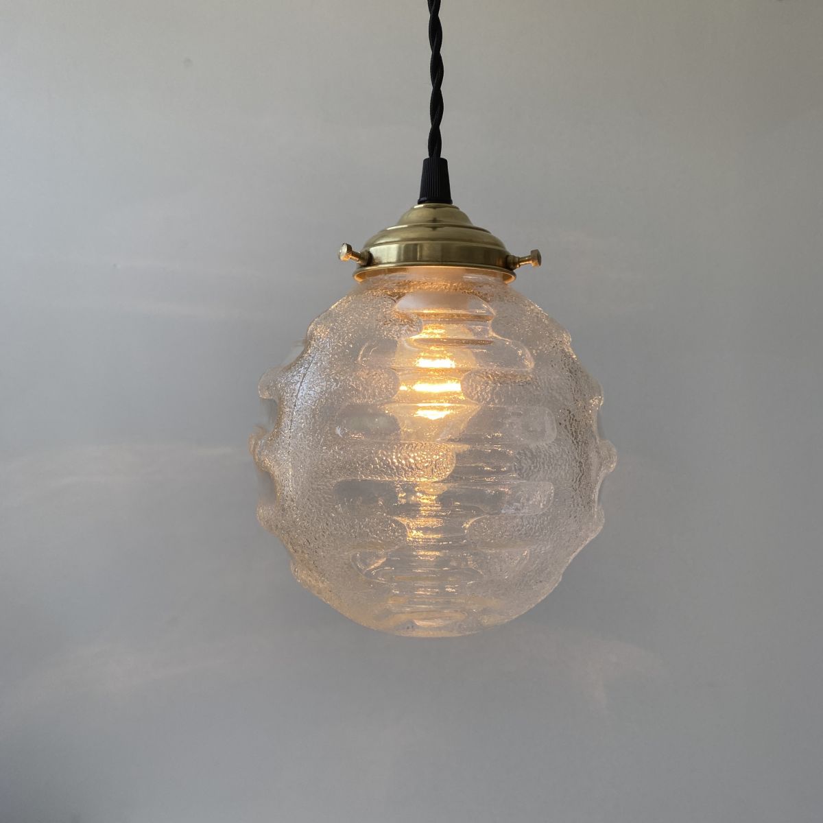 2 suspensions en verre épais d’un beau diamètre de 15 cm. En très bel état.