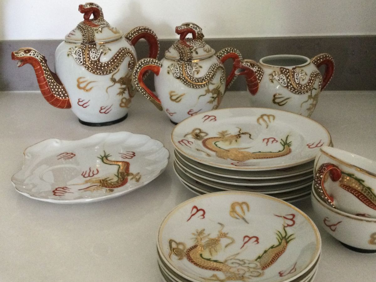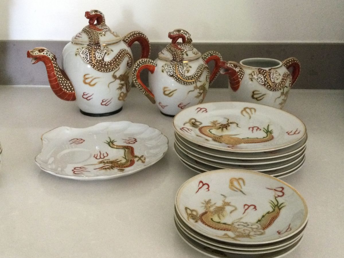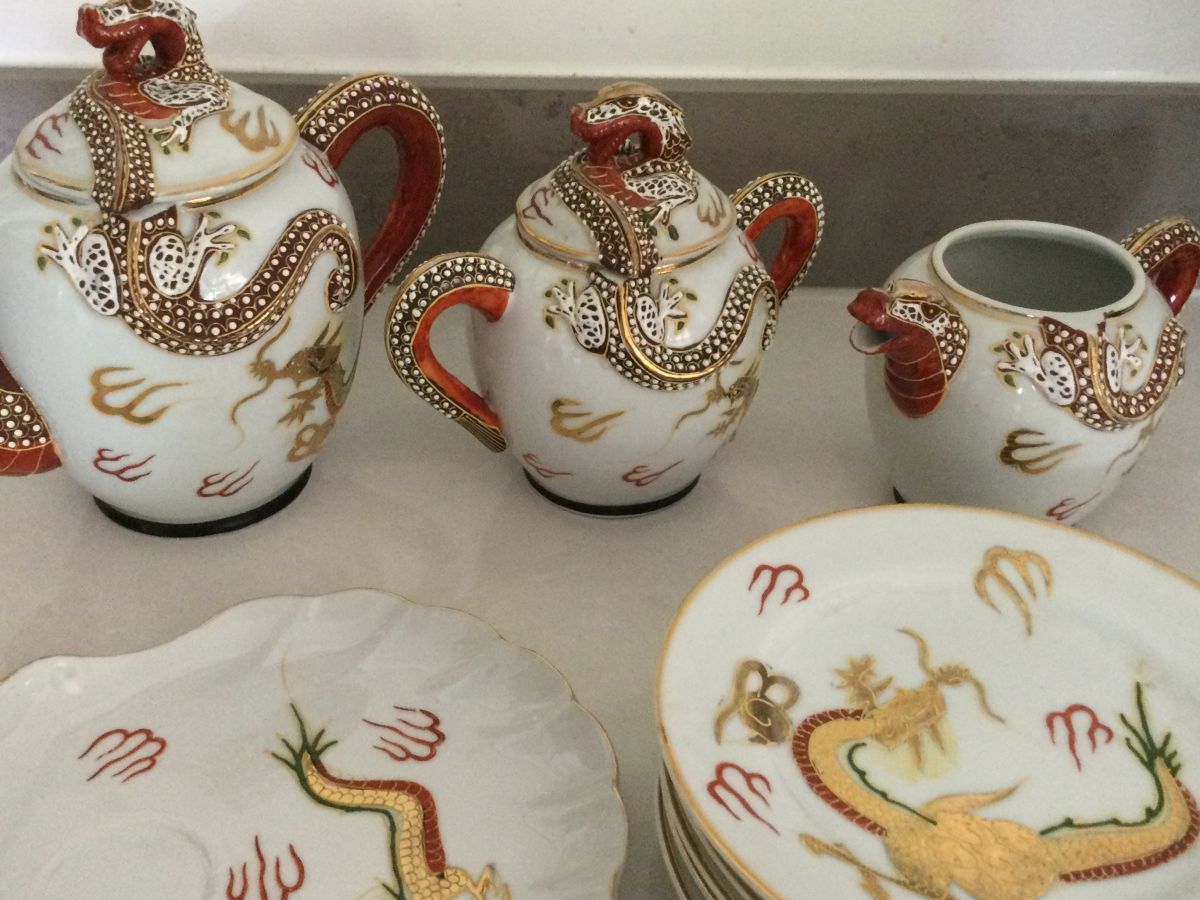 Je dispose également de 4 soucoupes et deux tasses dont l’une est légèrement ébréchée, que j’inclurai en sus si vous êtes intéressé.