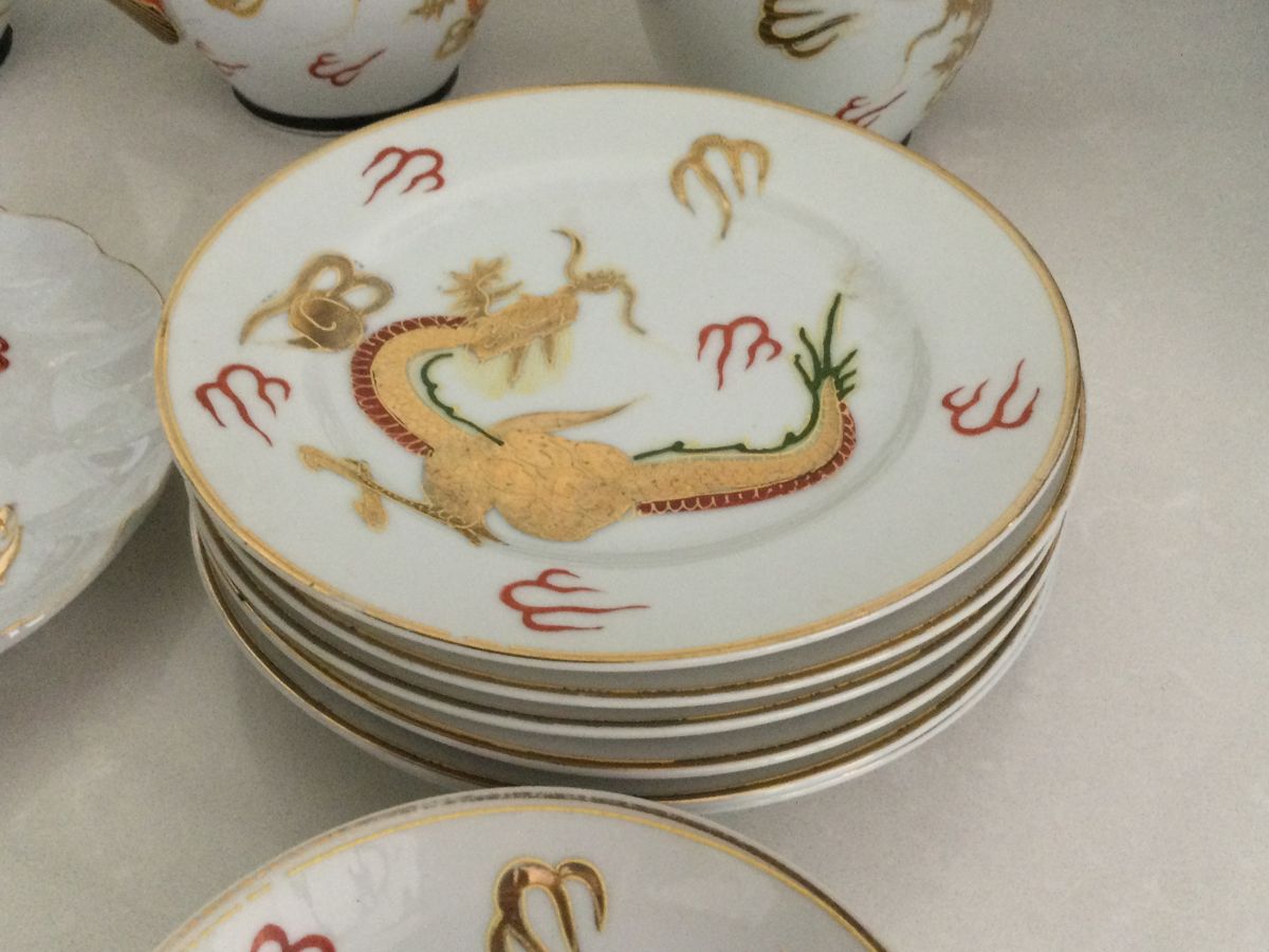 Ensemble en porcelaine au décor dragon en relief composé de: