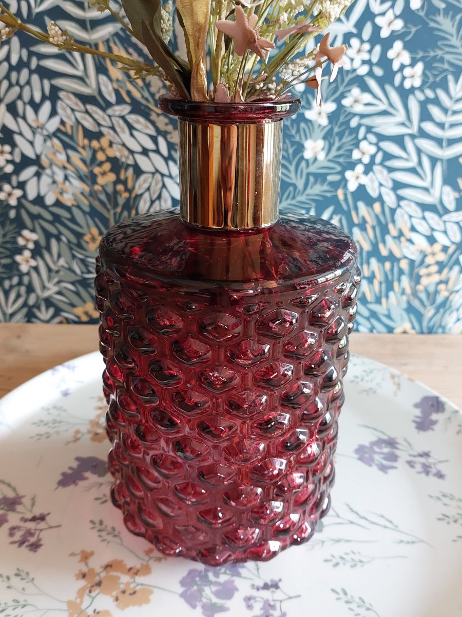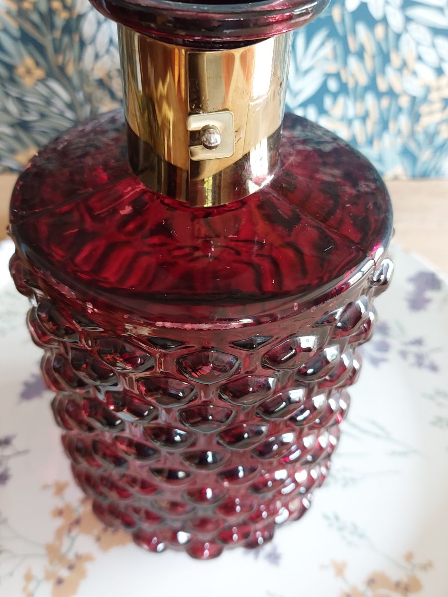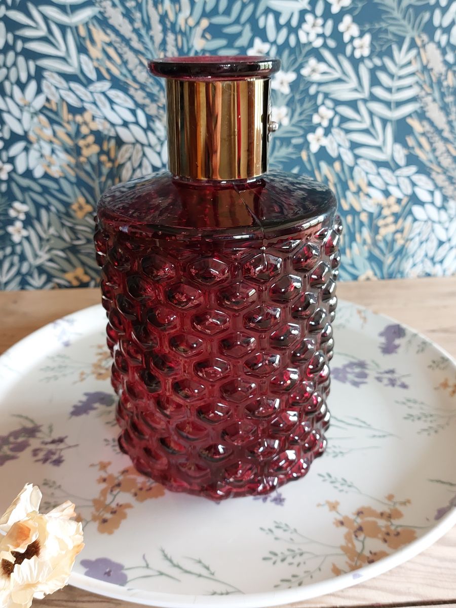 Carafeen verre à facettes, couleur rouge grenat