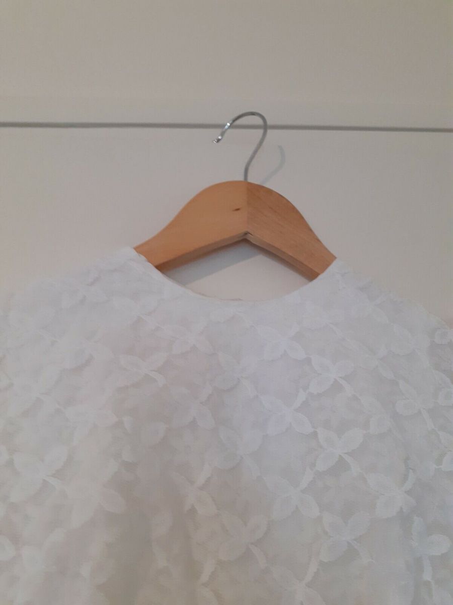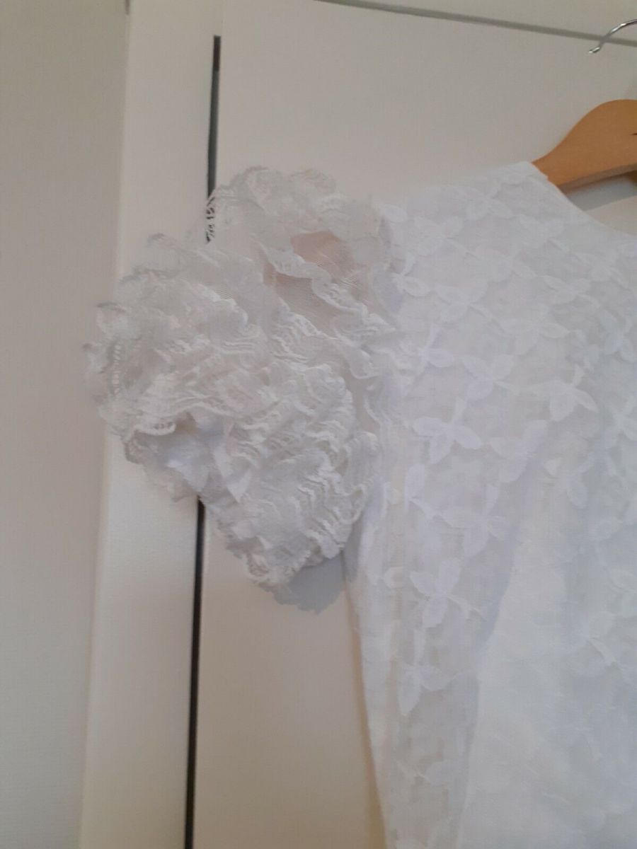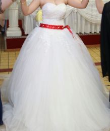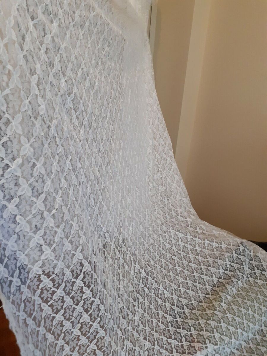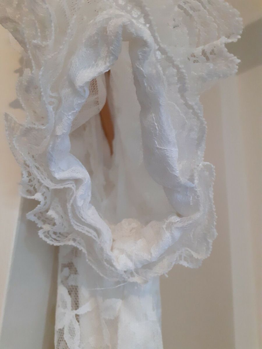 Maque un petit morceau de dentelle au niveau de la traîne, rien de très grave.