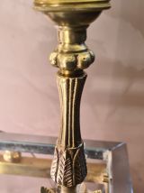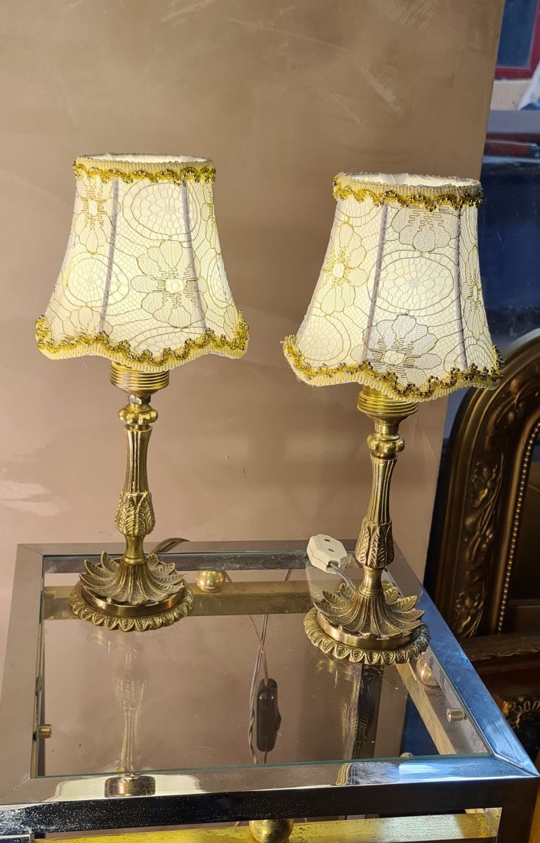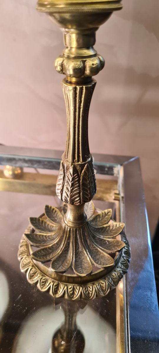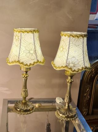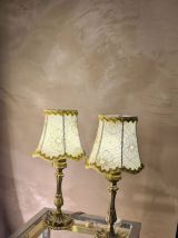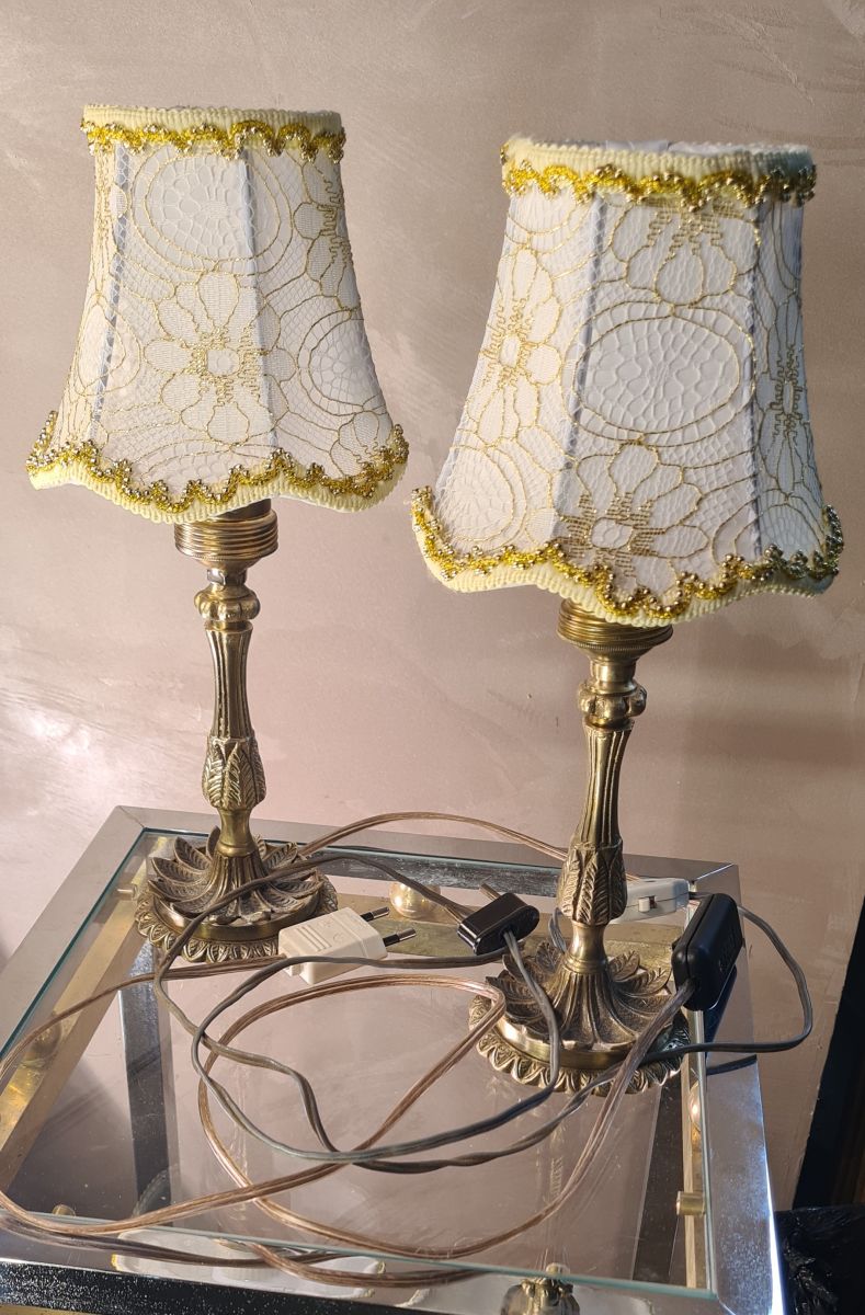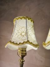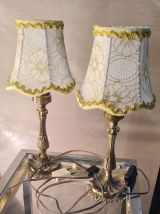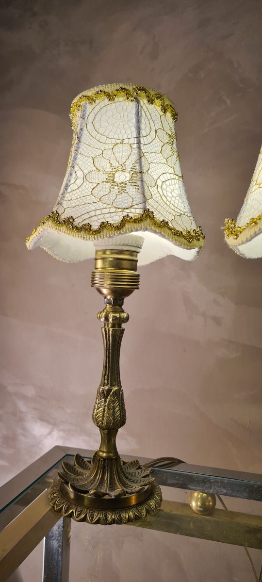 lot 2 lampes de chevets en bronze avec jolie abat jour or