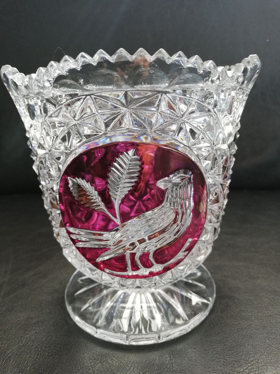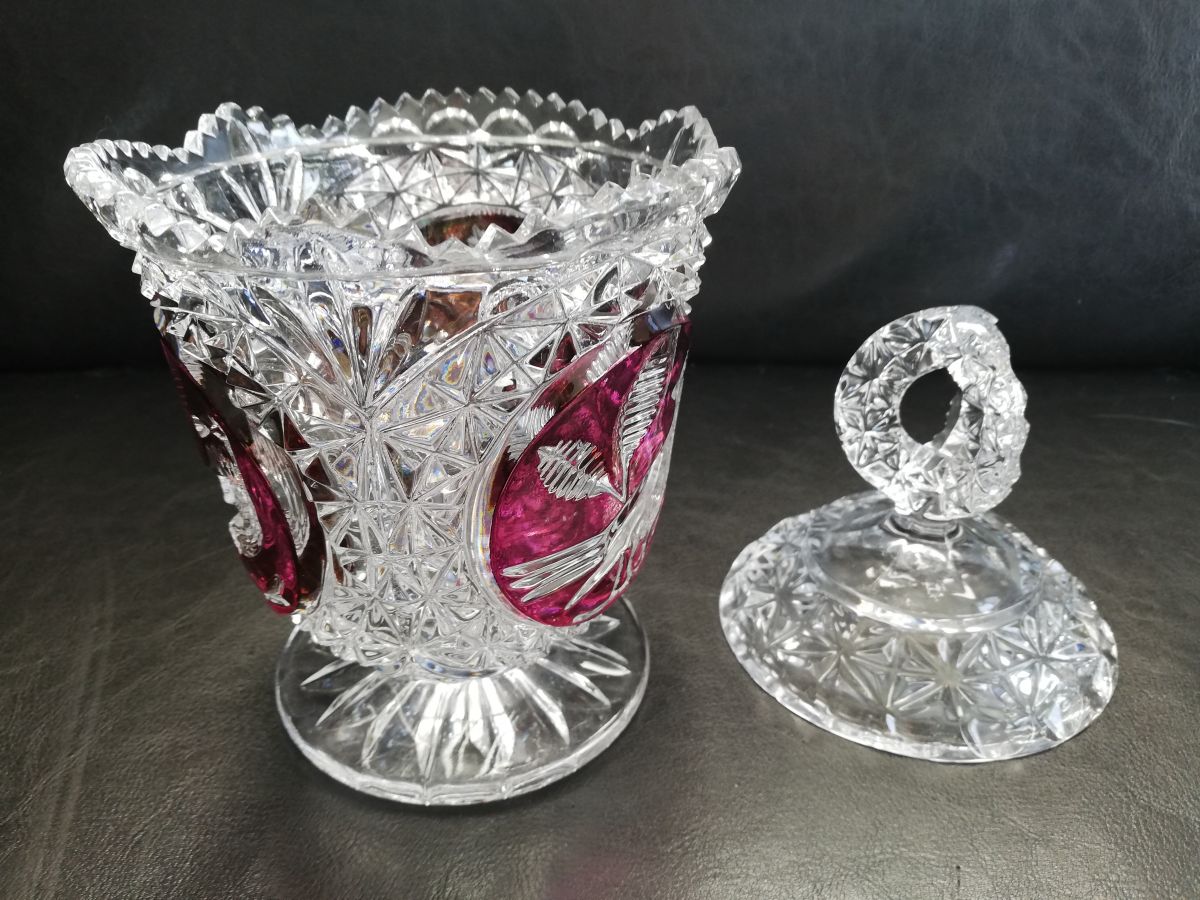 Ancienne bonbonnière en cristal de Bohème Hofbauer byrds ruby. Années 50/60.