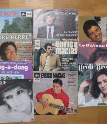 Vinyles 10 Disques 45 Tours - Années 70-80 : Pierre Perret-Sacha Distel-Linda De Sousa?Enrico Macias-France Galle?Tino Rossi-Teach-In