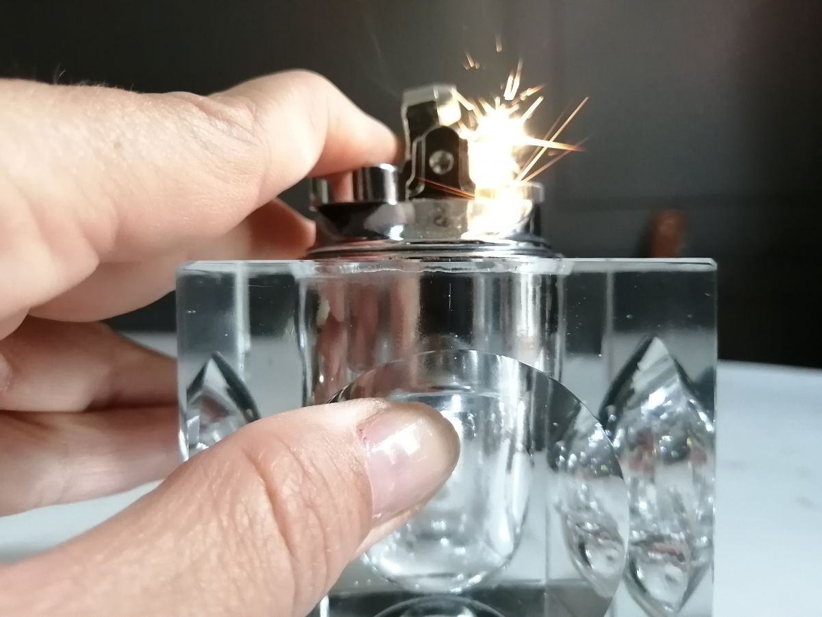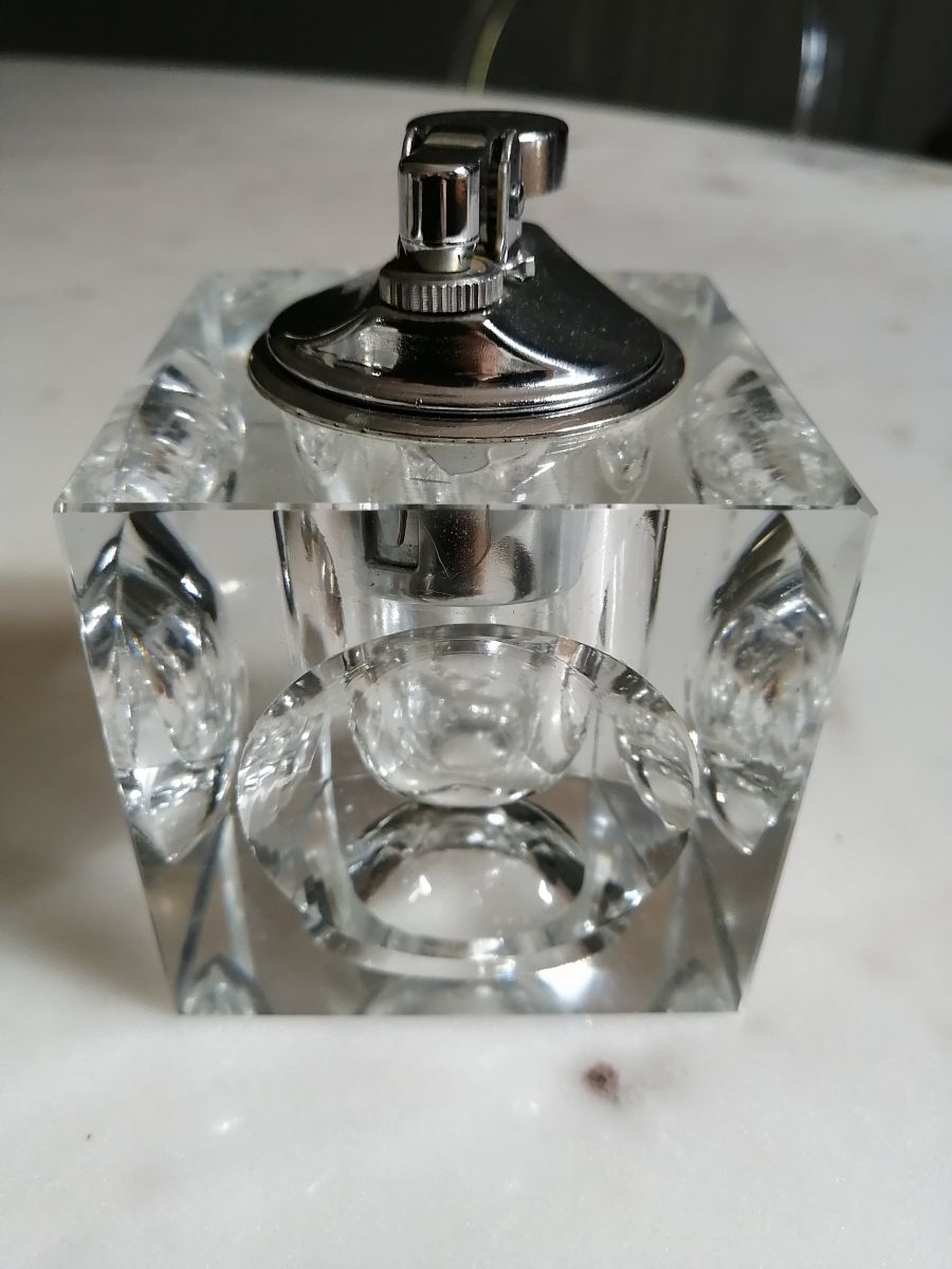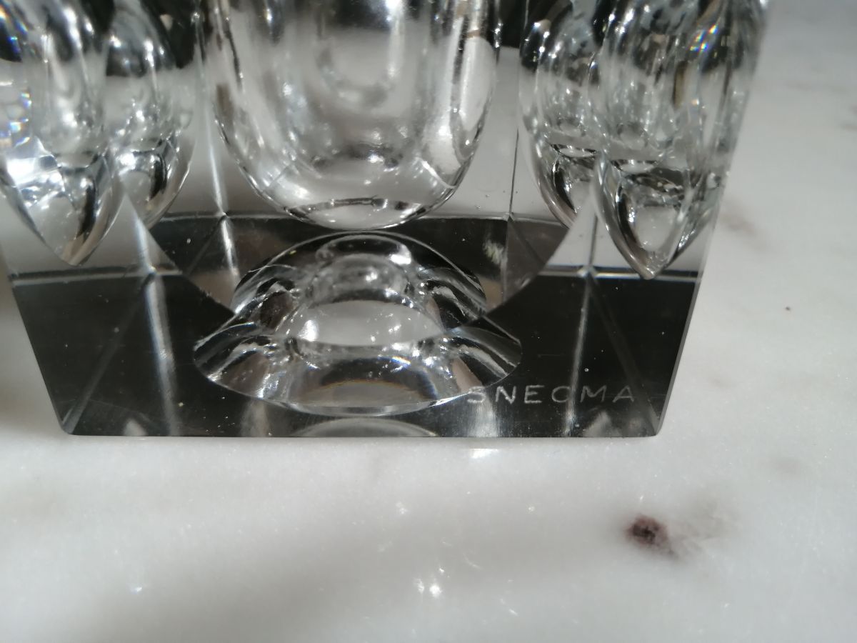 Très beau cendrier de table en cristal. Belle transparence grâce à sa matière, ses facettes arrondies. Période années 70.signé Segma.