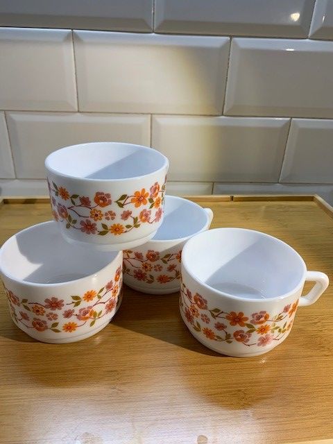 Les tasses que nous avons tous eues chez nous... Nostalgique ? Voici 4 tasses Arcopal en parfait état.