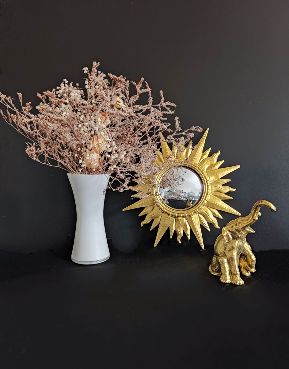 miroir soleil mural doré convexe dit "oeil de sorcière" des années 70