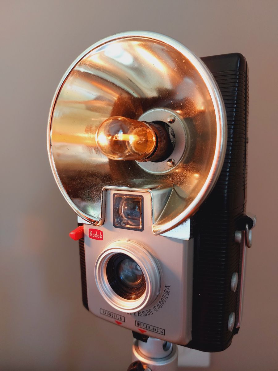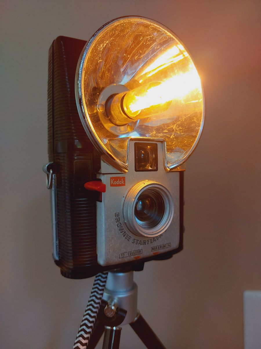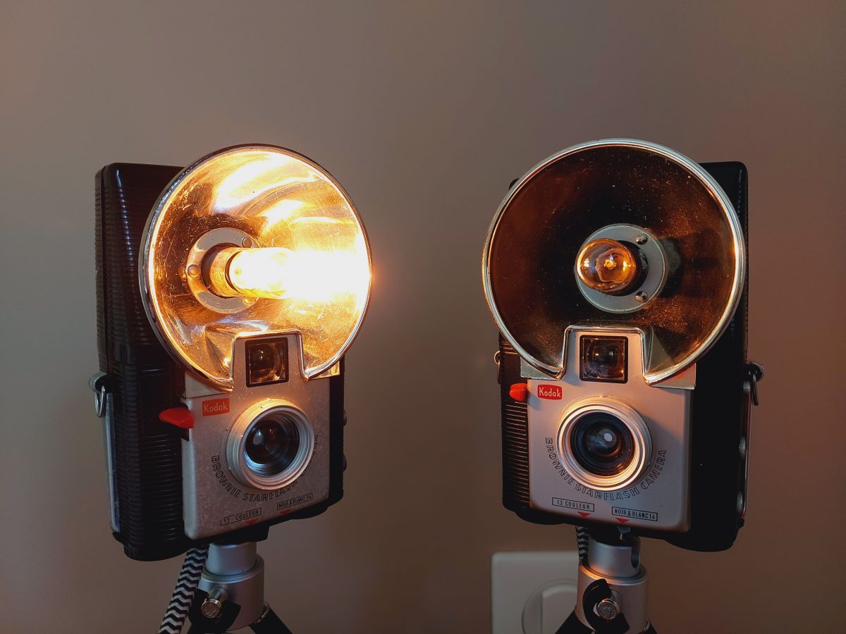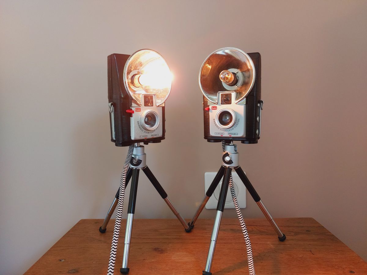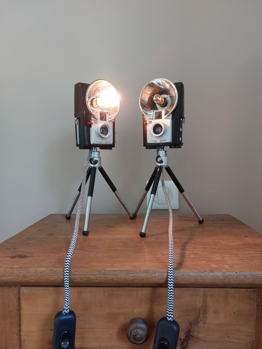 Duo de lampes de chevet réalisées à partir d'appareils photo Kodak Starflash ( 1957-1965), prises européennes, ampoules E12 LED 10w fournies ( 220v).