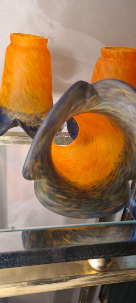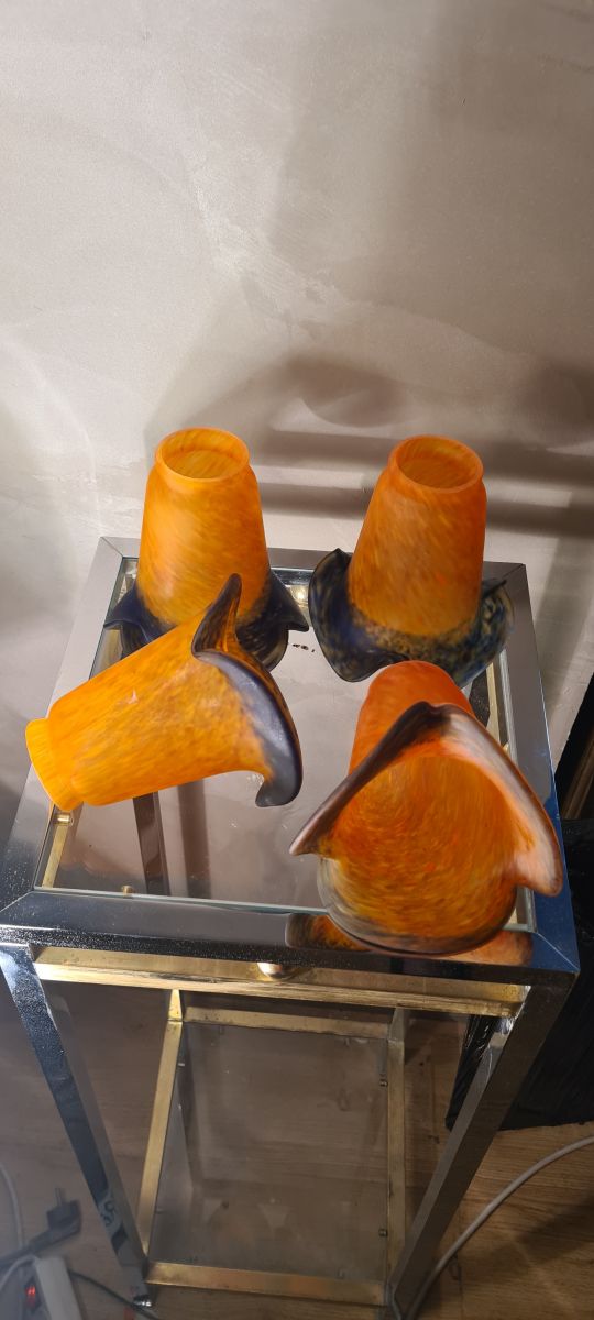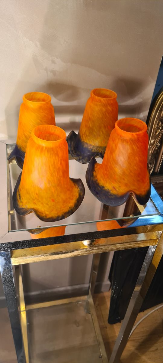 lot de 3Tulipes Art Deco en Pate De verre pour lampe lustre du style Muller Fres Luneville Degué