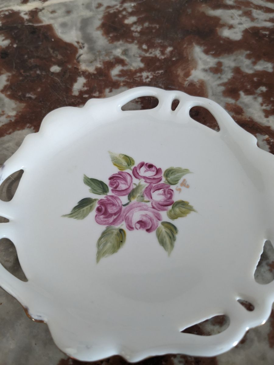 Petite coupelle en porcelaine. Décor peint à la main, bouquet de roses et signé ST. Années 70/80. Parfait état.