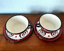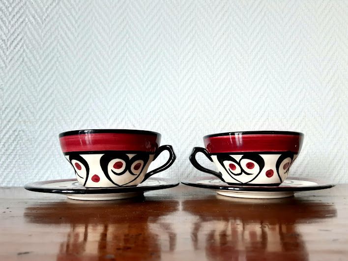 Duo "toi et moi" de tasses en faïence St Jean de Bretagne, style art déco