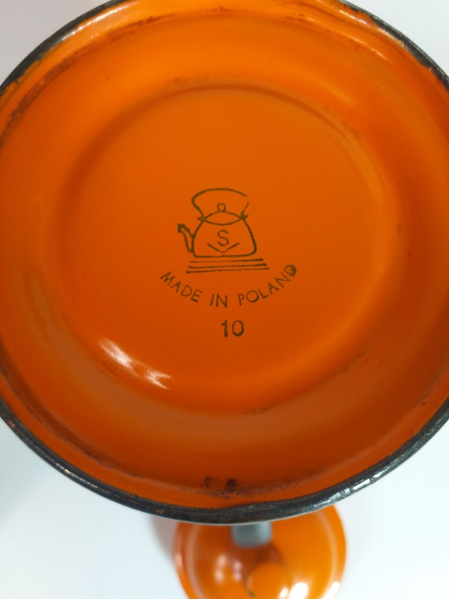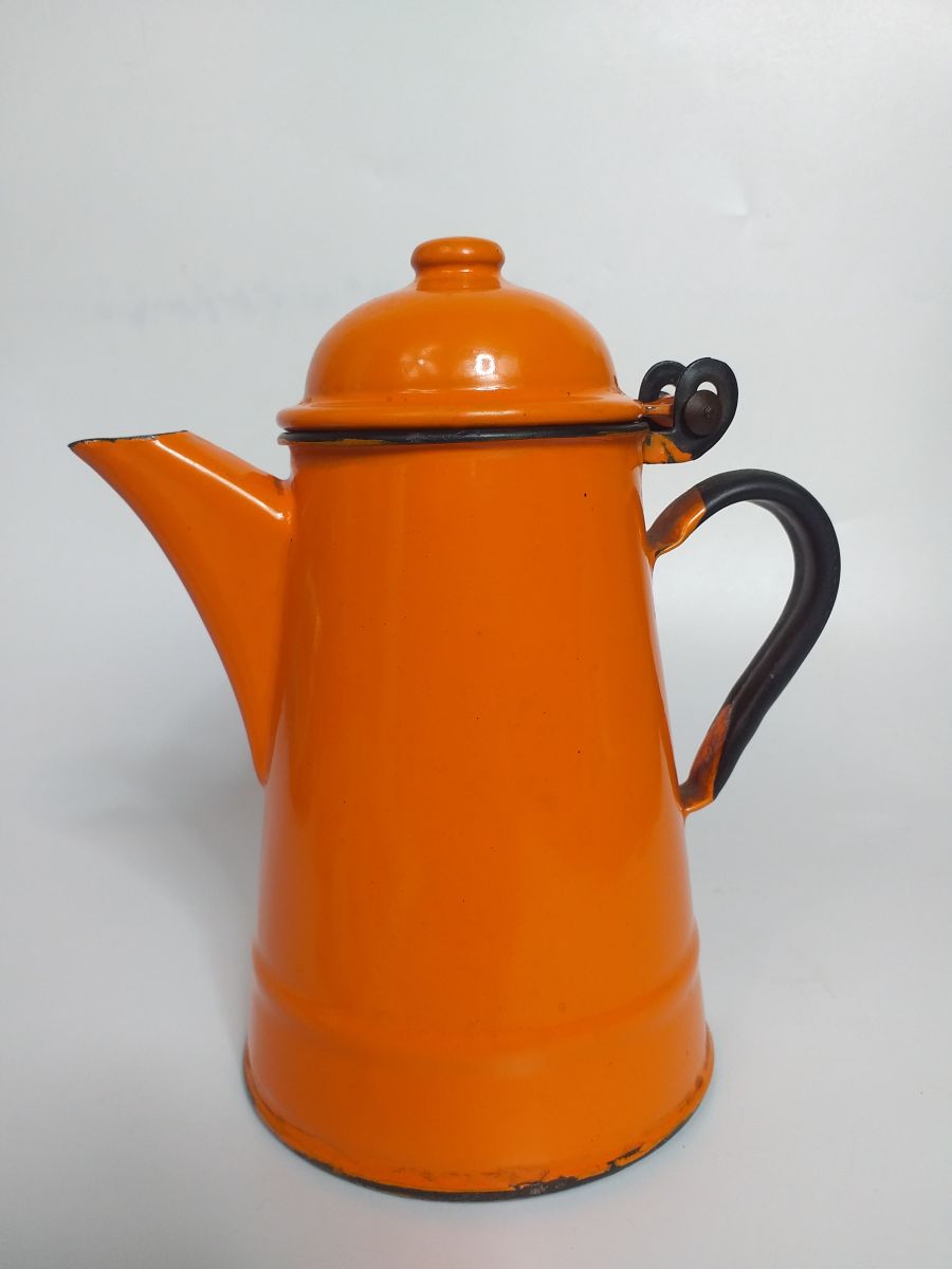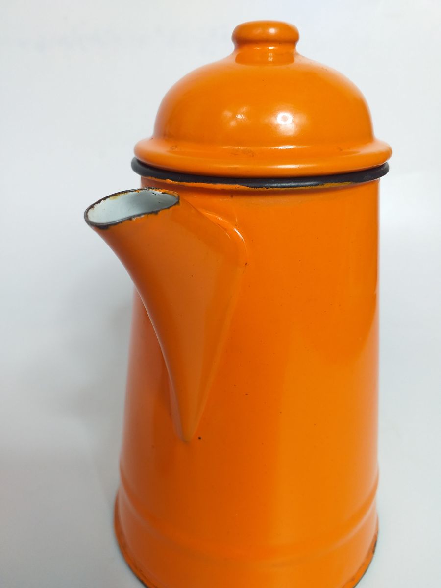 Cafetière émaillées oranges vintage 70" en très bon état fabriquer en Pologne.