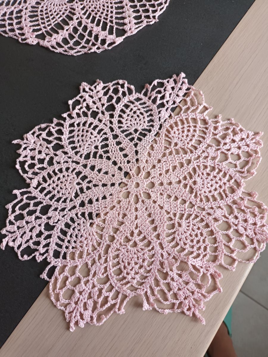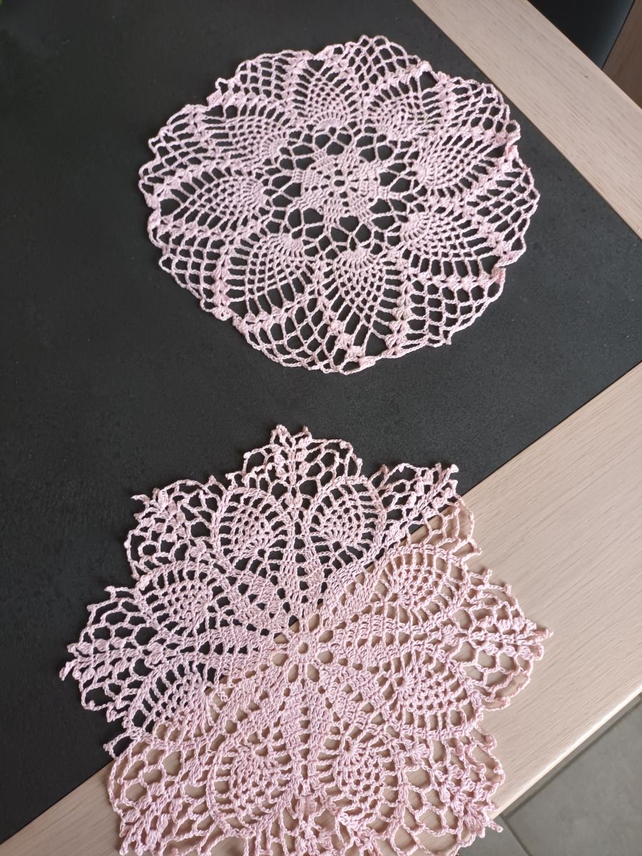 Vends 2 napperons crochetes mains.le GM 30cm,PM28cm