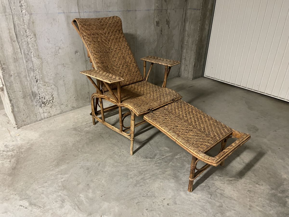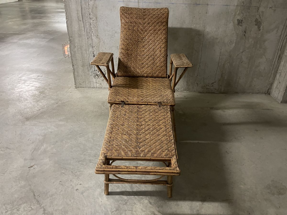 Chaise longue en rotin années 40