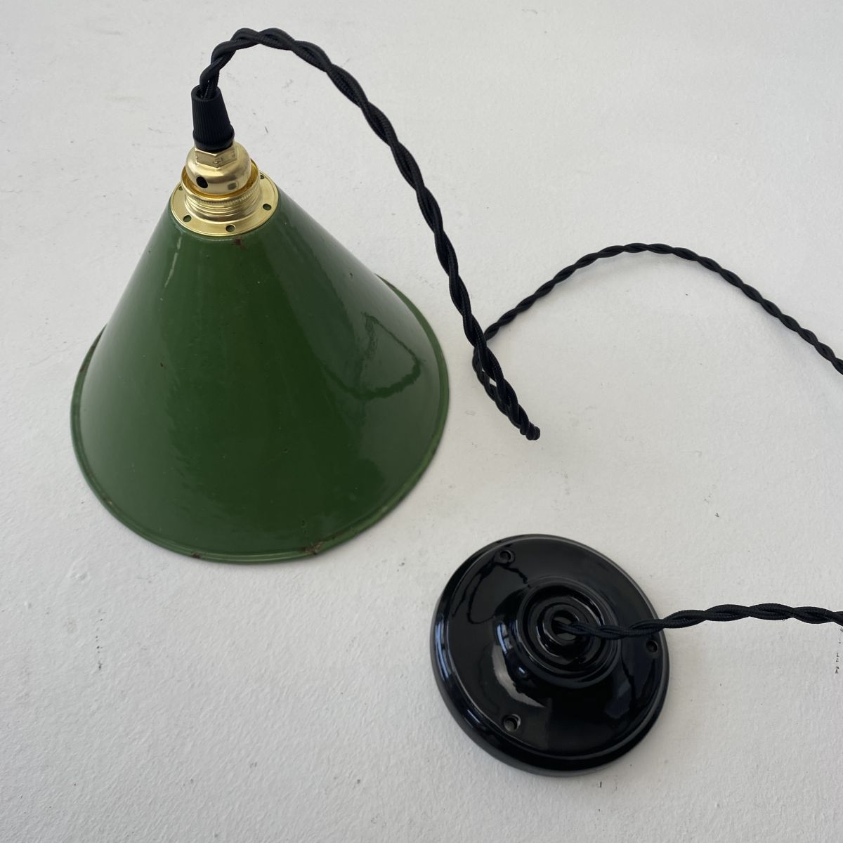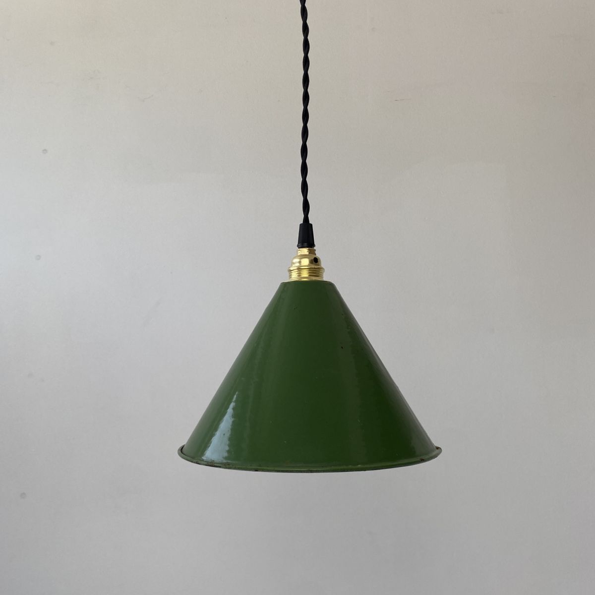 Ancienne suspension conique en tôle émaillée. Années 1950. En bel état général pour son âge.
