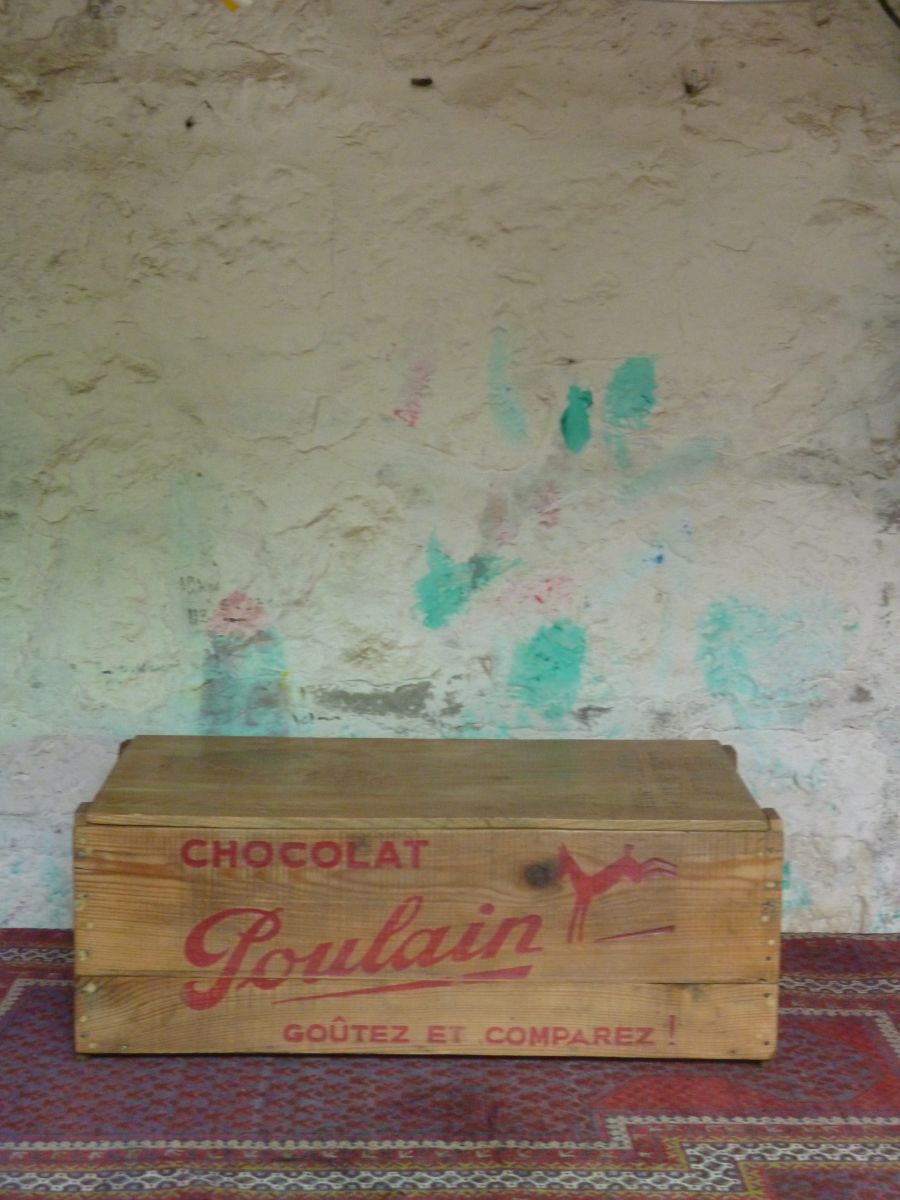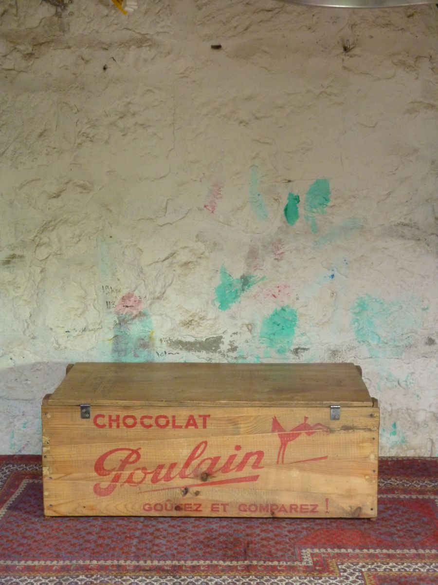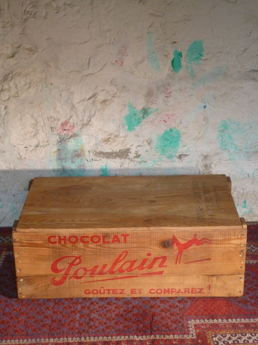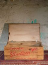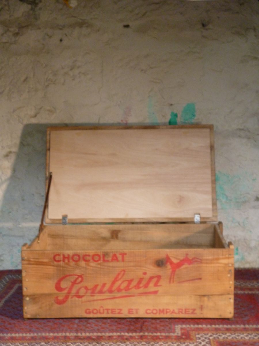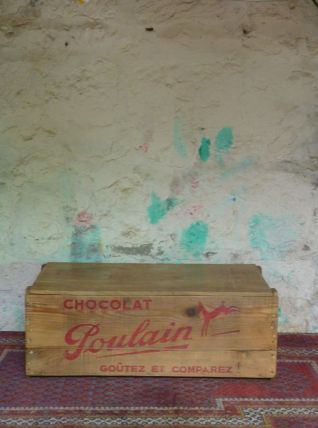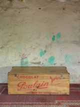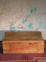 Ancienne caisse de transport en bois " CHOCOLAT POULAIN " des années 1960 .