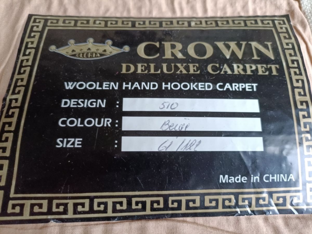 Marque : TAPIS CHINOIS CROWN DELUXE CARPET EN LAINE 1980' STYLE AUBUSSON DIMENSIONS : largeur 66 CM - Longueur 1, 20 M sans les franches - Longueur 1,40 M avec les franches 1 TAPIS = 150 EUROS 2 TAPIS = 260 EUROS 3 TAPIS = 350 EUROS ETAT NEUF A RETIRER A THIAIS 94