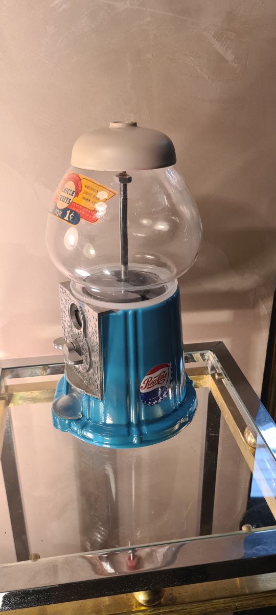 Distributeur a bonbon chewing gum, bonbonniere en fonte et verre ,non fonctionnel