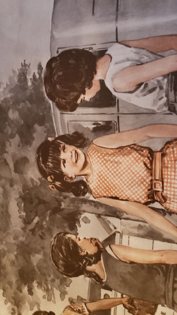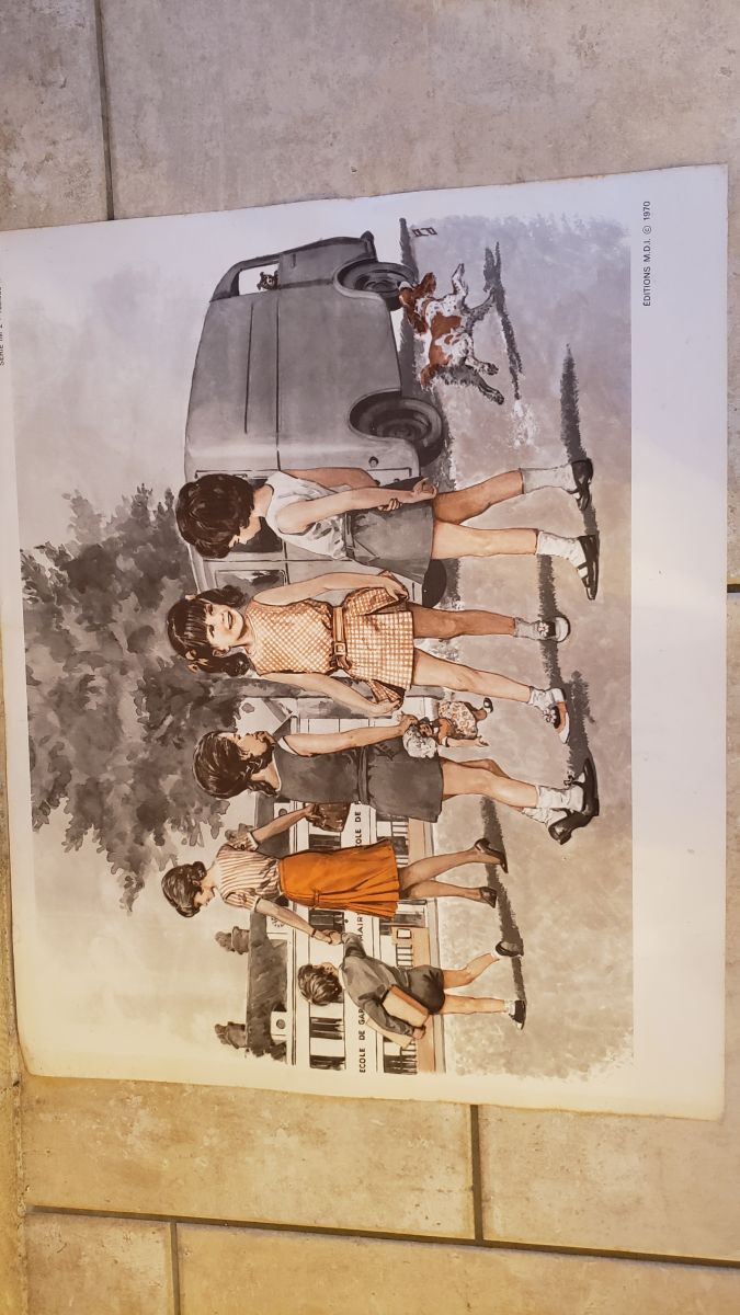 Dans les écoles, ils illustraient le propos des instituteurs et encourageaient la prise de parole des enfants. Série éditée par MDI en 1970, elle se distingue par son graphisme doux, ses touches de couleurs et ses cadrages étonnants. Cette affiche illustre le passage du facteur et la remise du courrier au recto et des oiseaux et des fillettes dans une cours d'école au verso.