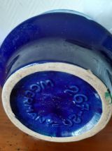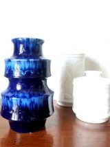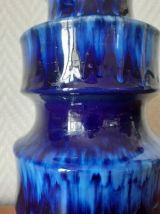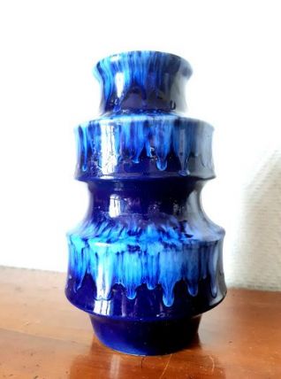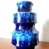 Vase "pagode" en céramique à plusieurs niveaux. Céramique émaillée à couverte bleu foncé, avec coulures en bleu plus clair. Très bel effet de brillance.