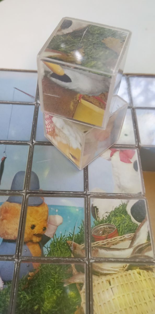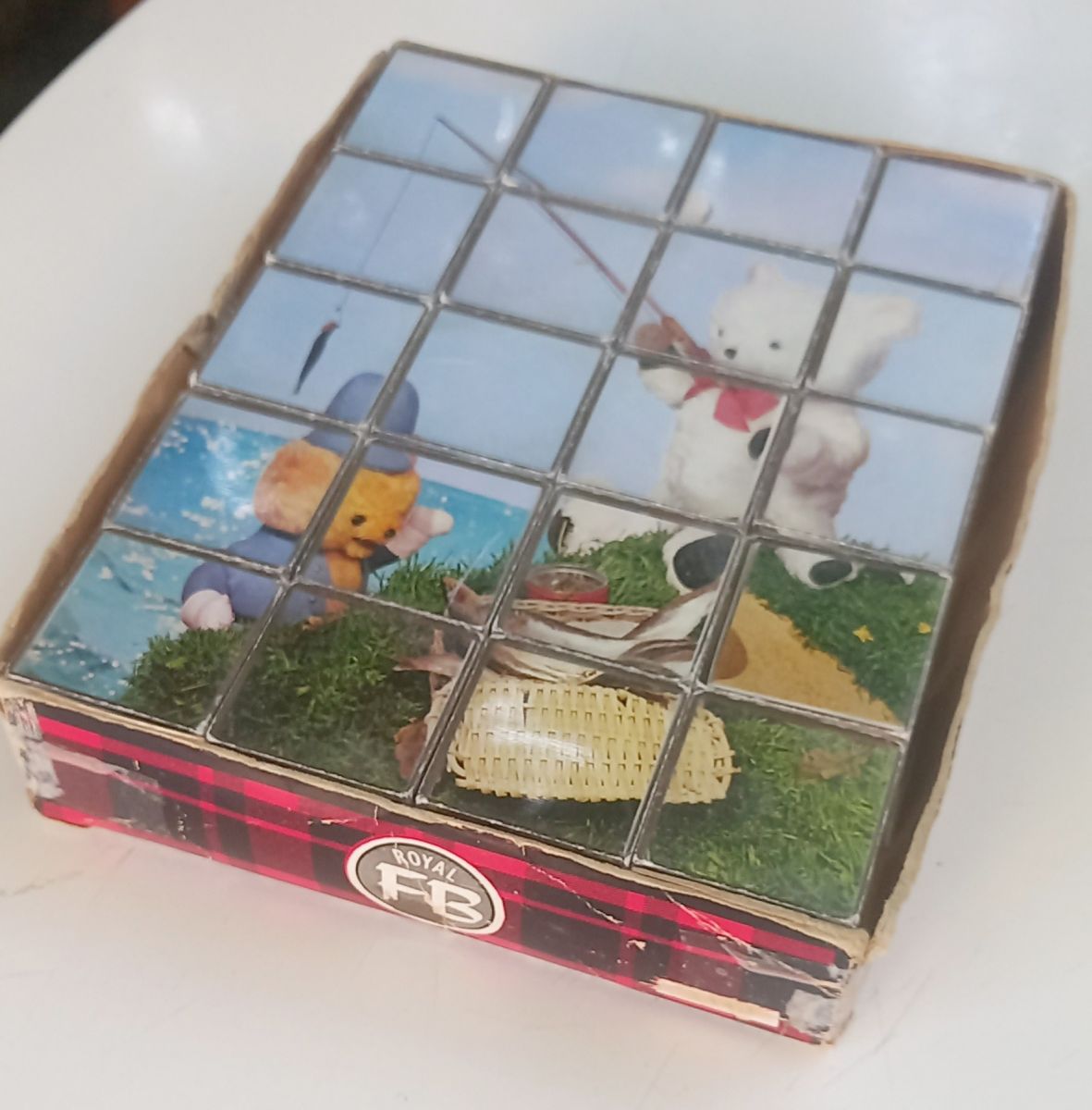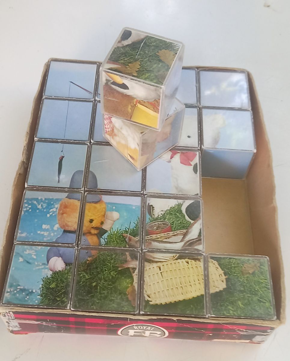 Boîte de cubes en plastique des années 70 de dimensions 4X4 cm de la marque Royal FB.