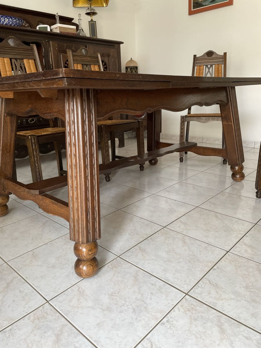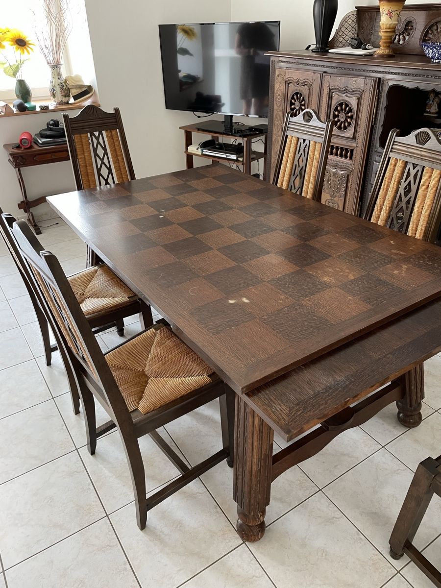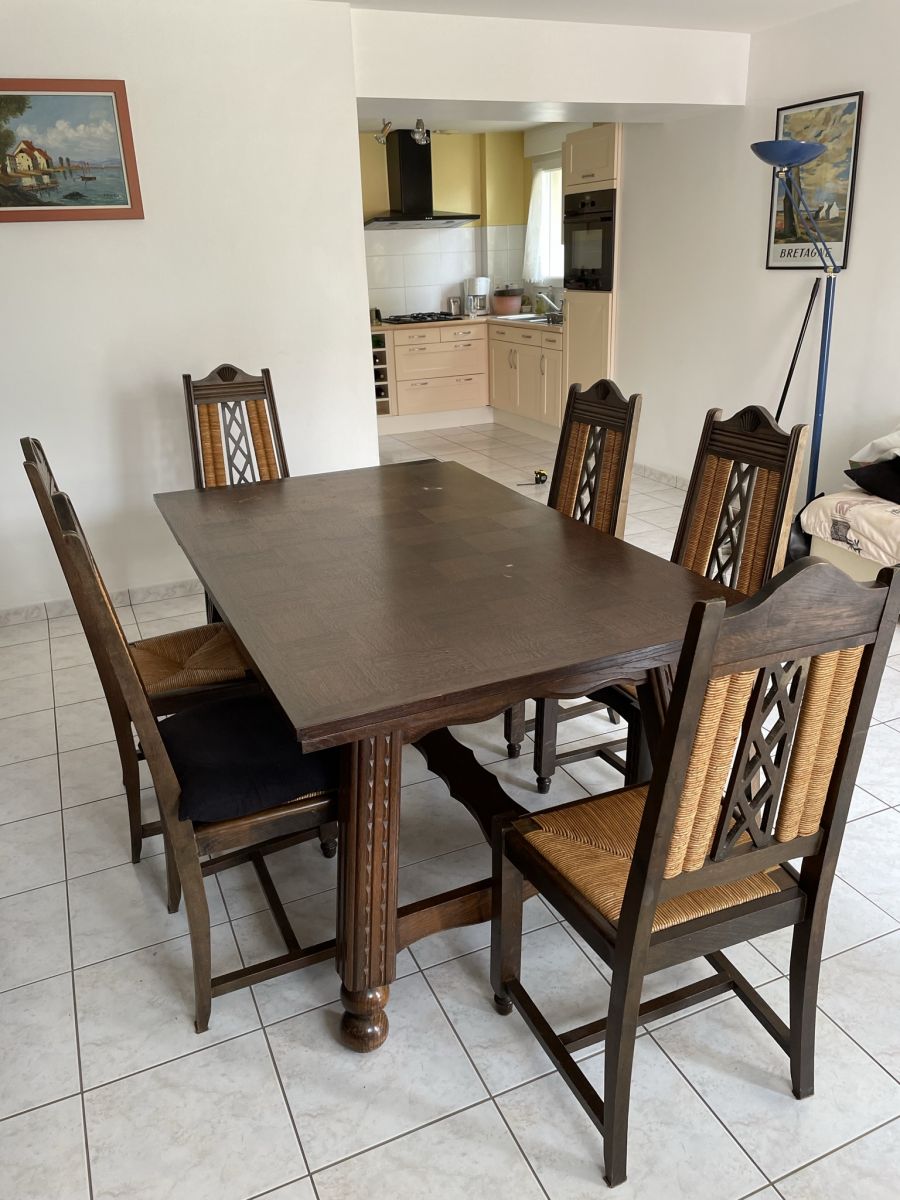 Belle table bretonne en chêne massif + 6 chaises assorties