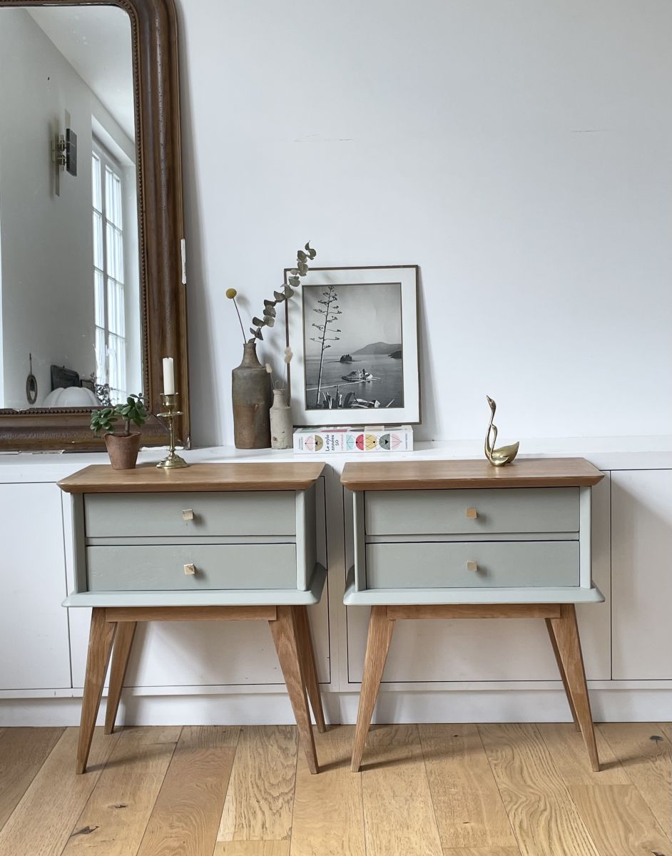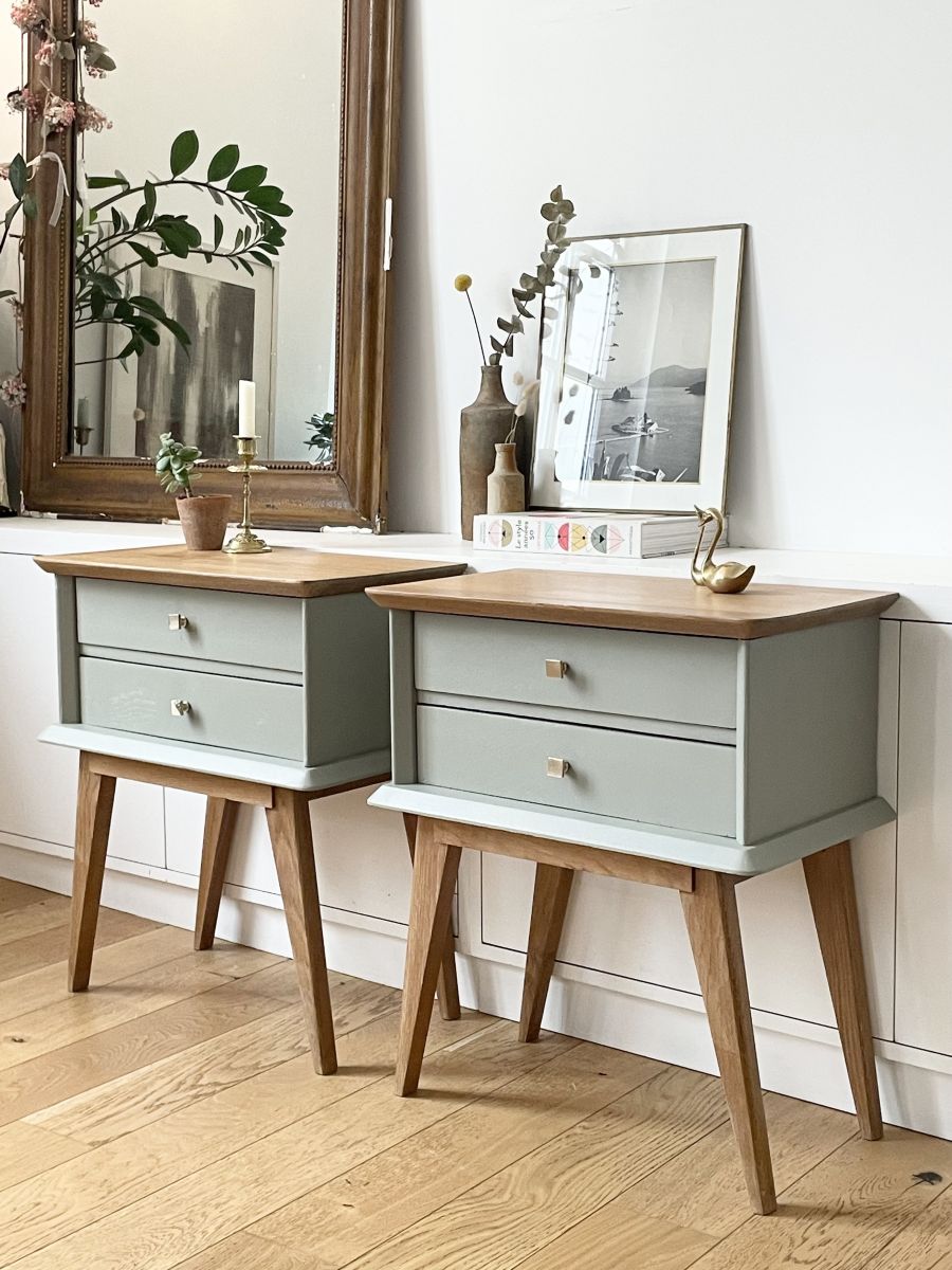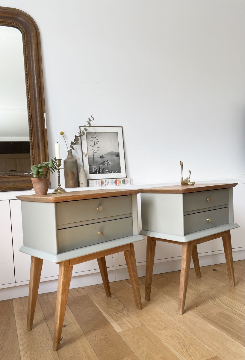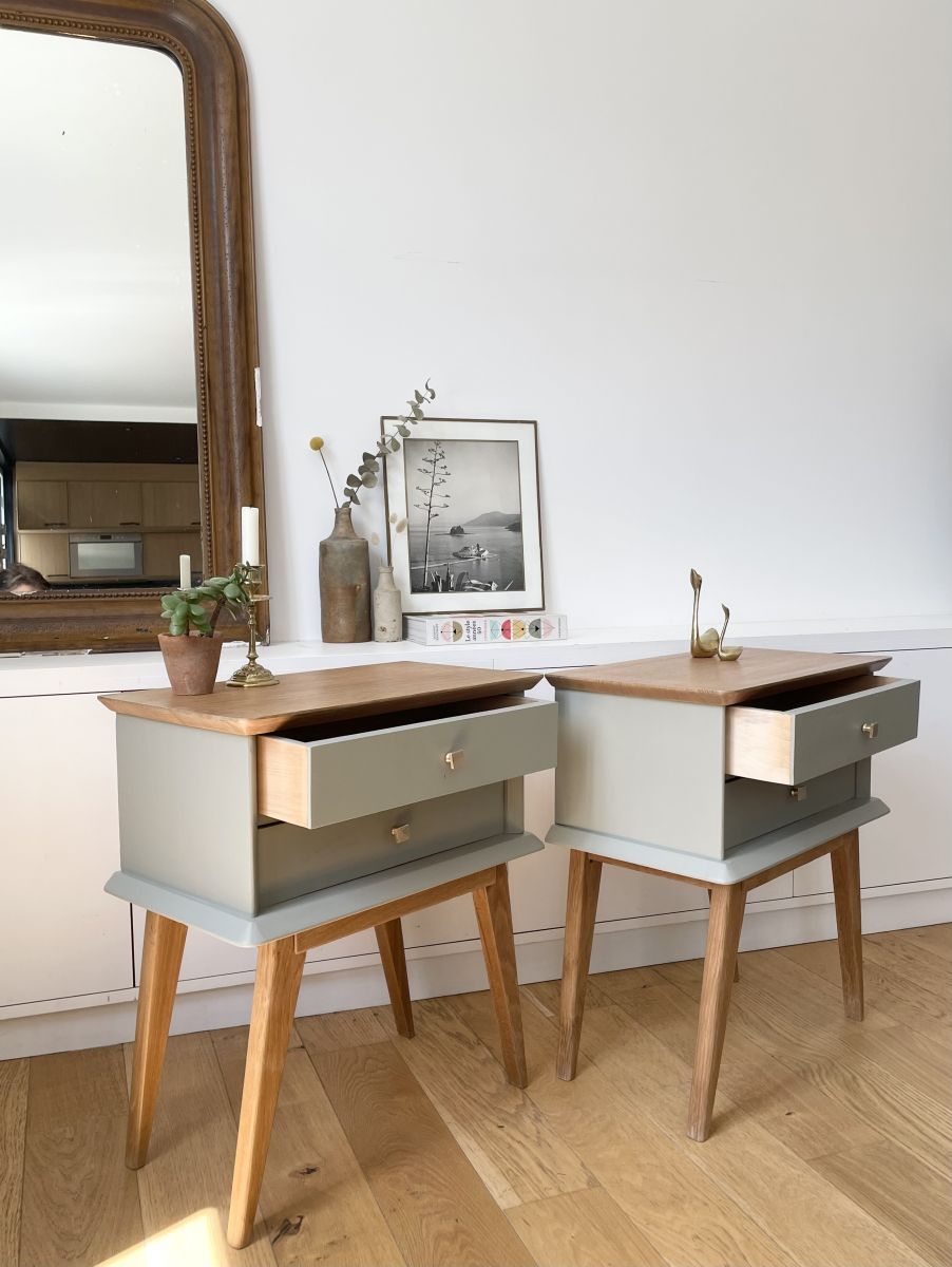 Elégante paire de chevets des années 60 avec de jolis pieds compas.