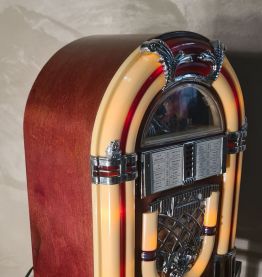 jukebox wurlitzer 38x27x25 cassette 1975 a 80 tres deco non testé,en bon etat