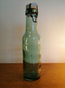 Le verre de cette bouteille est très épais, la bouteille pèse son poids. Des très jolis motifs décoratifs en transparence ornent le pot.