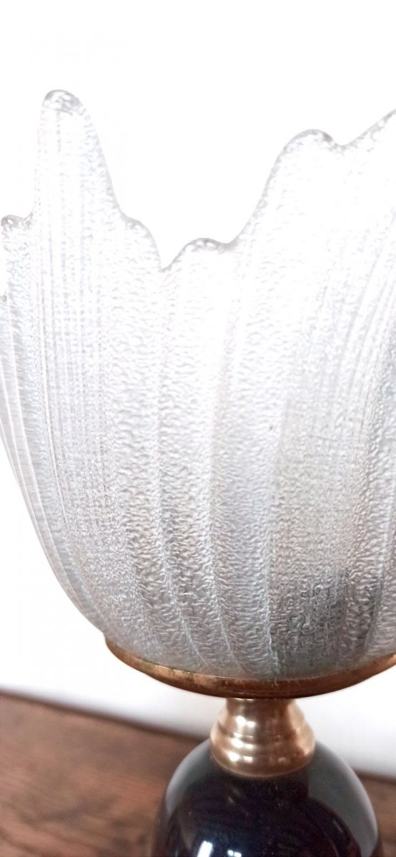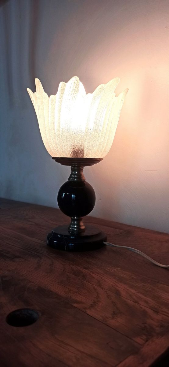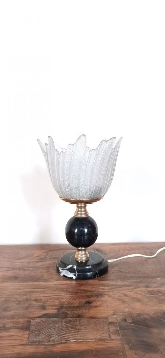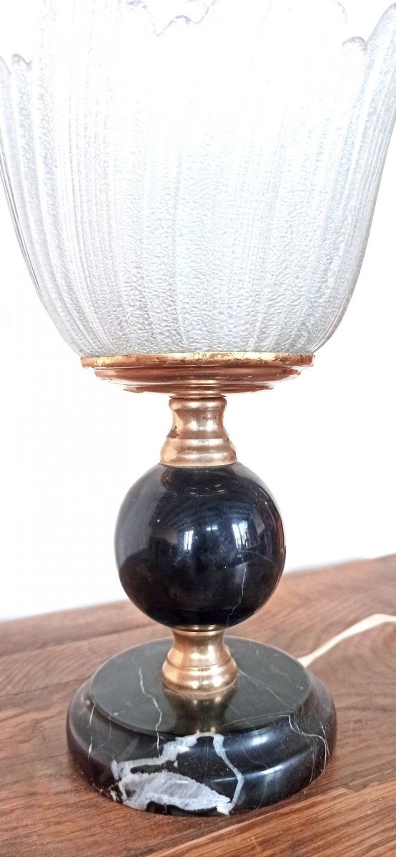 À noter que la lampe est ancienne,. Il n'y a aucun impact sur le verre le marbre est en bon état.